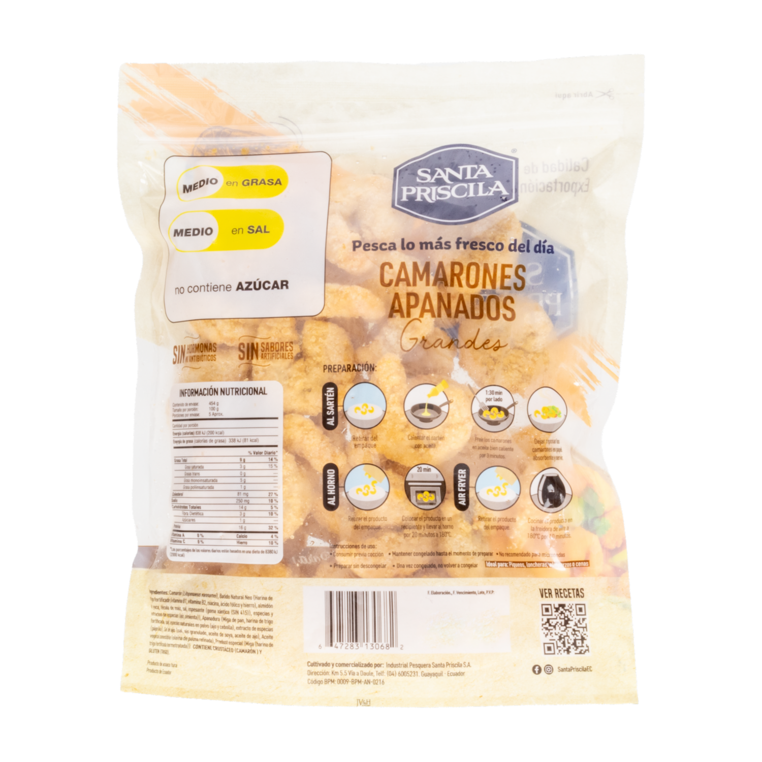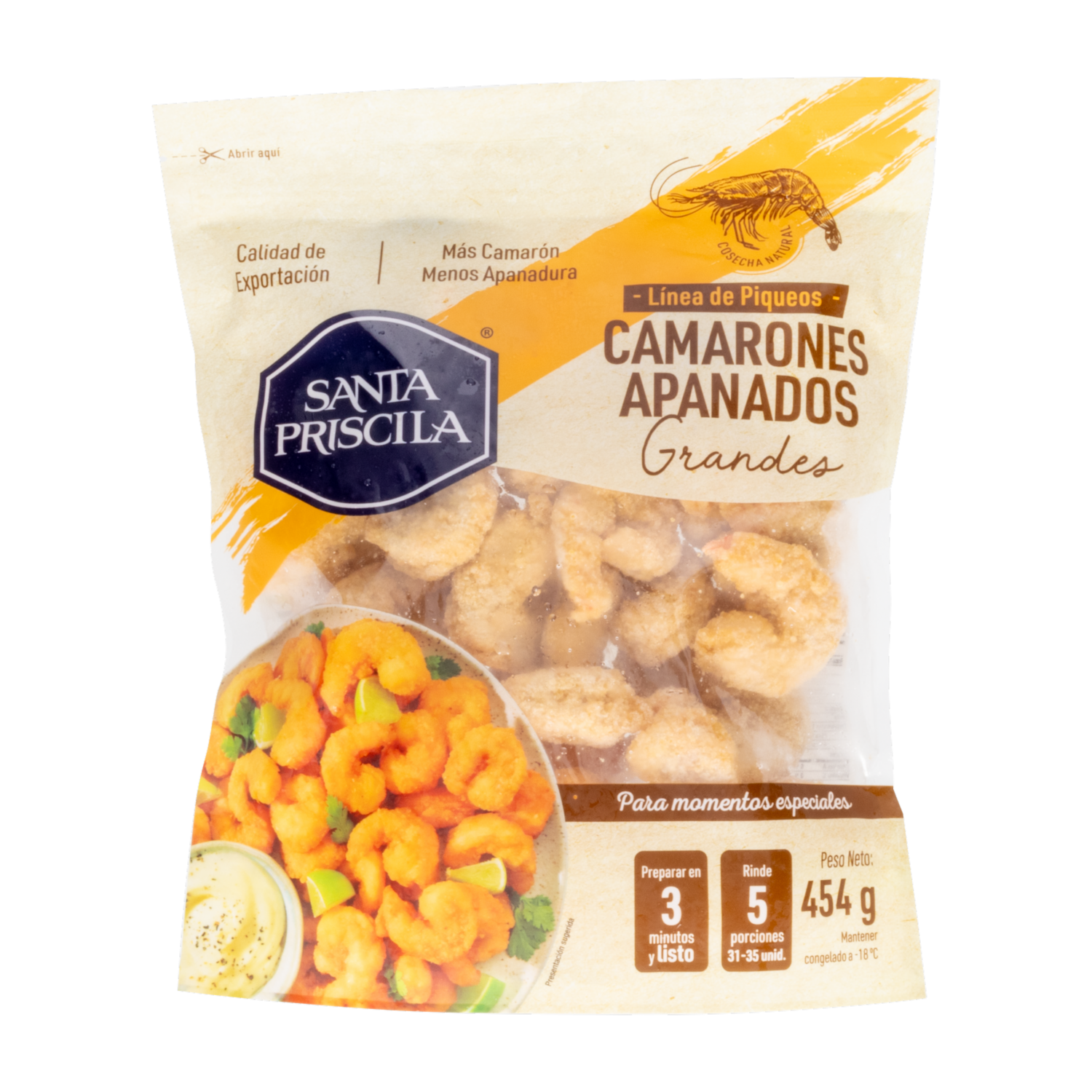 Camarones Apanados Grandes SANTA PRISCILA 454 G – SANTA PRISCILA. Disponible en nuestros locales. Precio y stock pueden variar según la tienda.