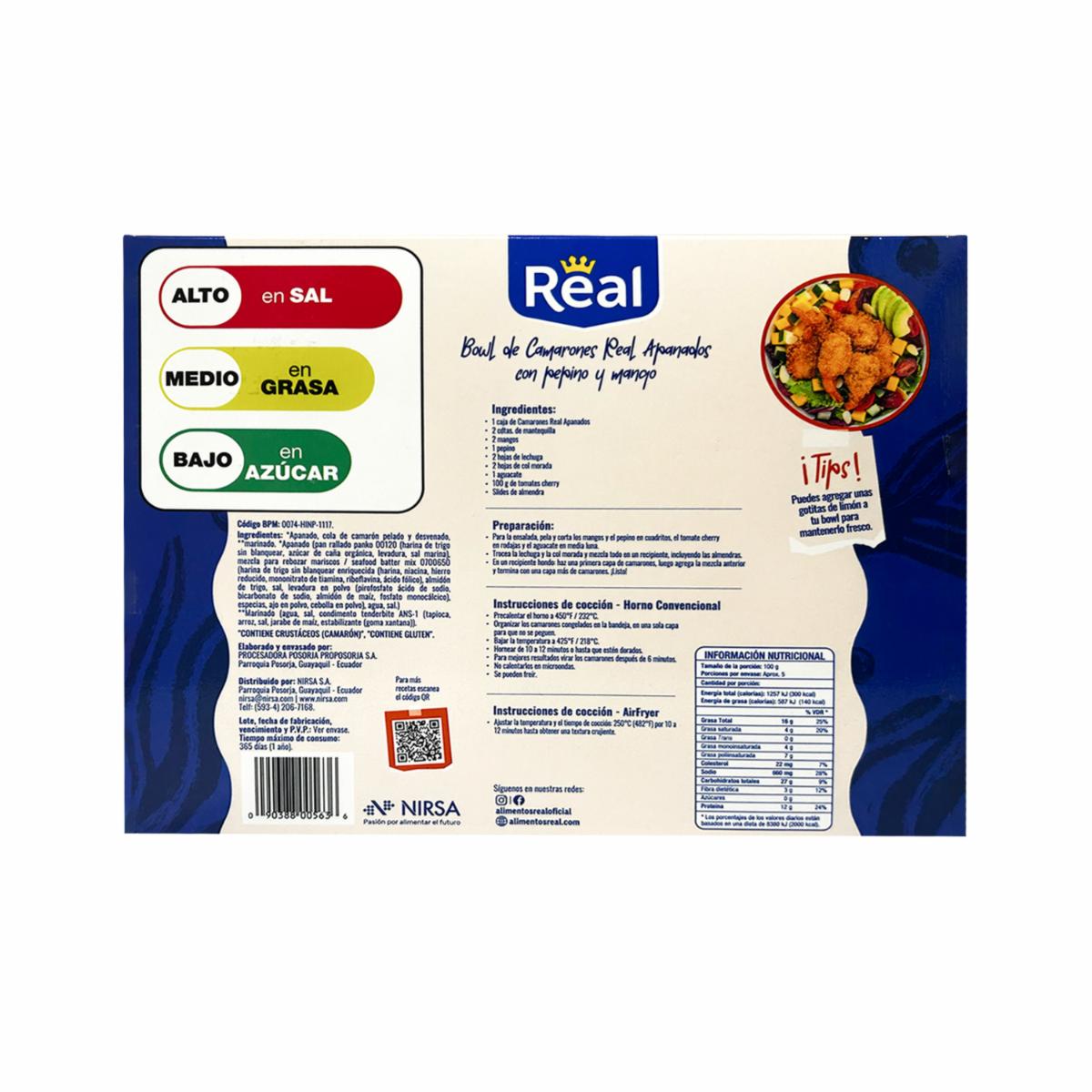 Camarones Apanados Precocidos Y Congelados REAL 454 G – REAL. Disponible en nuestros locales. Precio y stock pueden variar según la tienda.