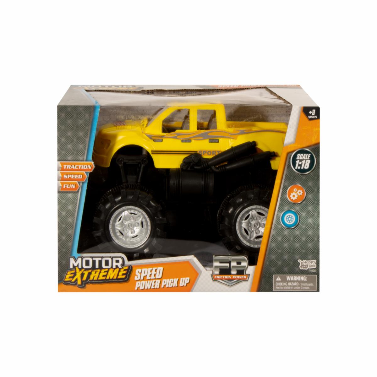 - La Camioneta de Juguete Pick Up Fricción Escala 1:18 Motor Extreme está hecha para que los niños vivan momentos de acción y adrenalina, este vehículo es perfecto para el entretenimiento de pequeños, su sistema de fricción mejora el desarrollo de las habilidades motoras finas, es de fácil funcionamiento, solo se debe halar hacia atrás, para que el carro tome impulso y ande lo más rápido, su diseño de camioneta 4x4 le darán un estilo urbano a las competencias