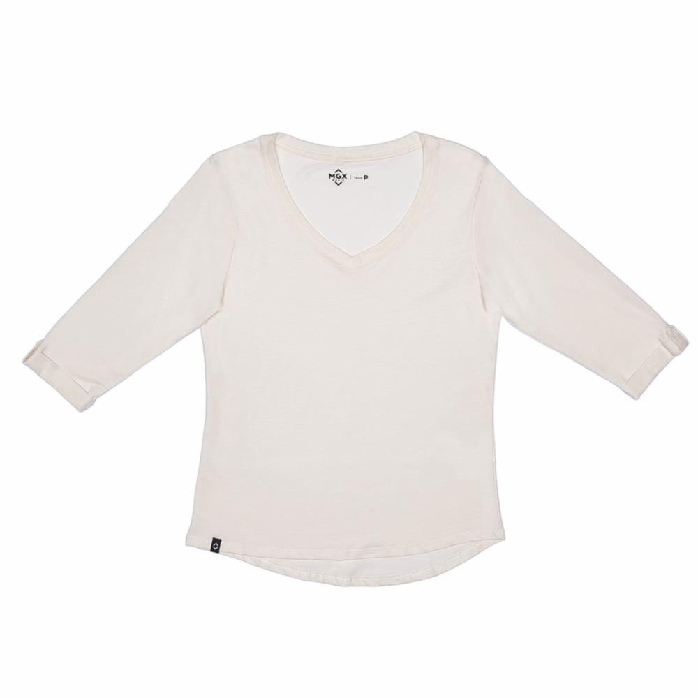 • Camiseta cuello en v manga 3/4 MGX BASIC, talla extra grande, color crudo, para dama