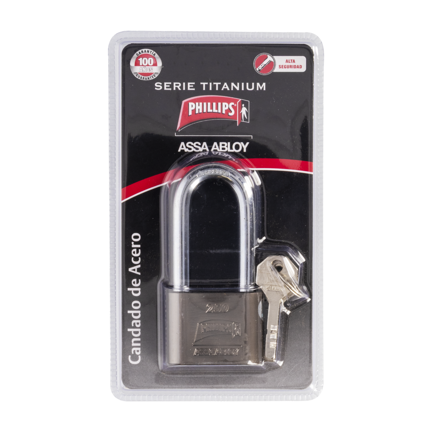 Candado Acero Titanium Gancho Largo PHILIPS 50 MM