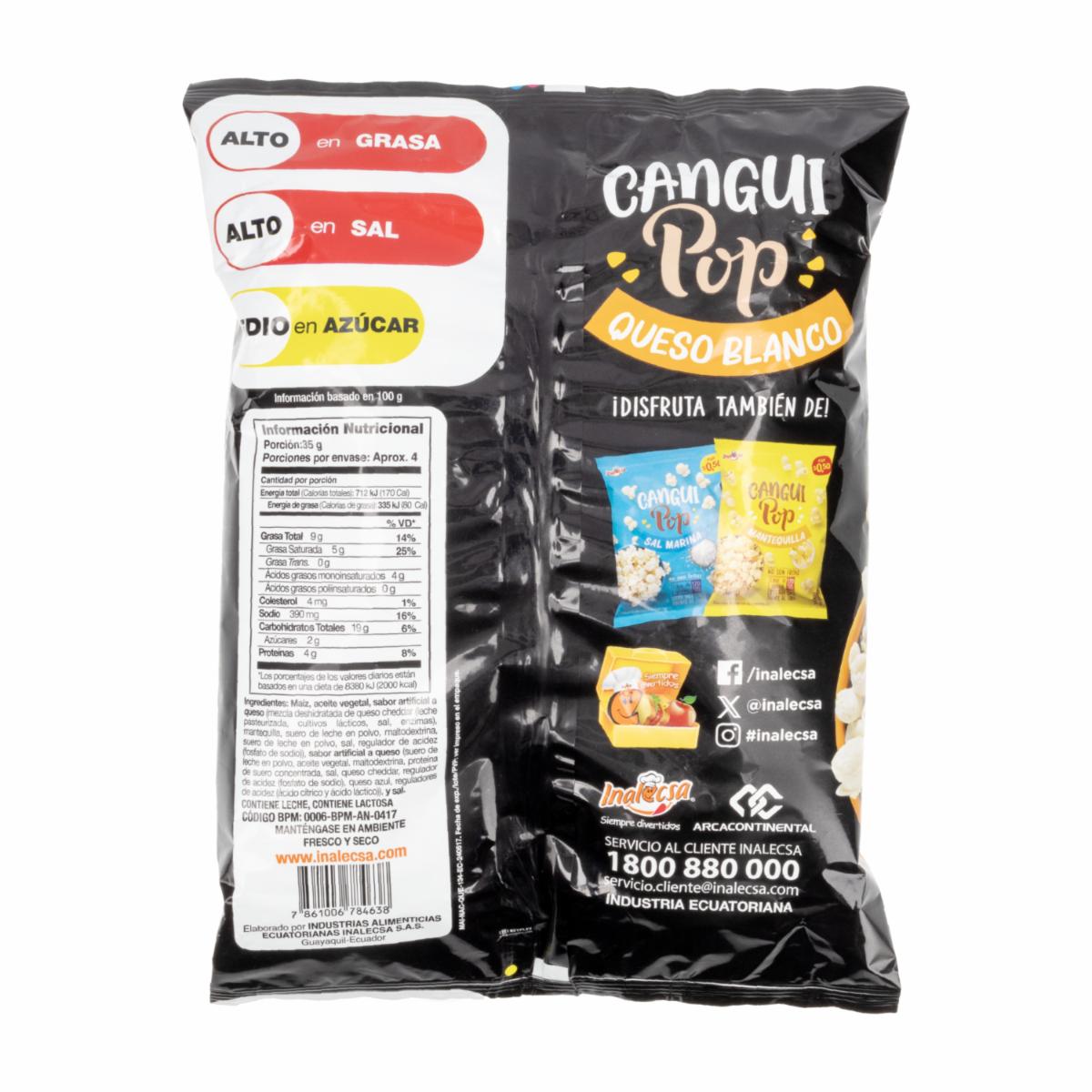 Cangui Pop Queso INALECSA 134 G – INALECSA. Disponible en nuestros locales. Precio y stock pueden variar según la tienda.