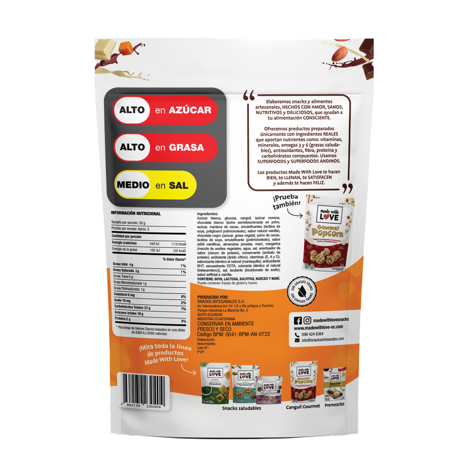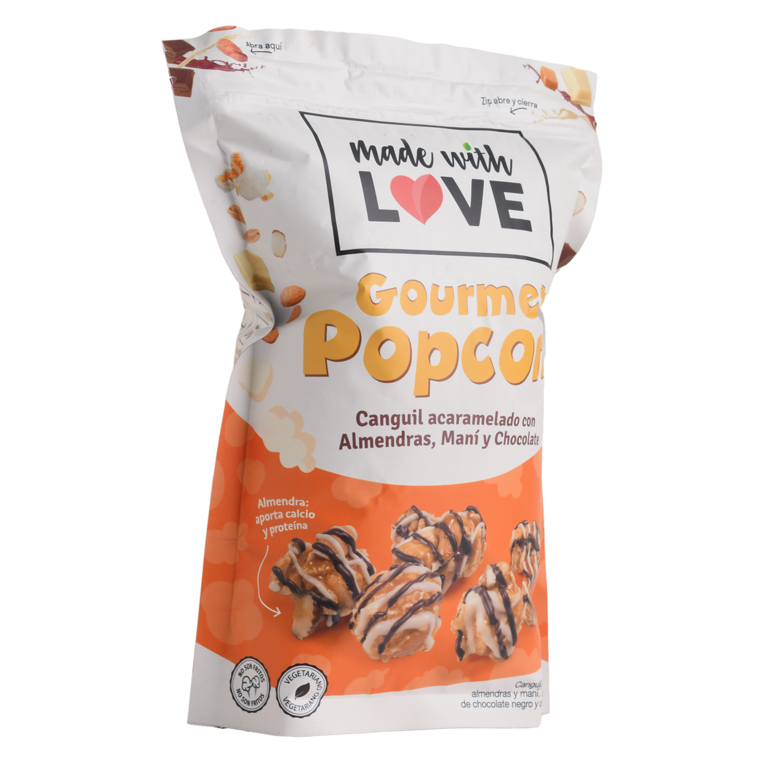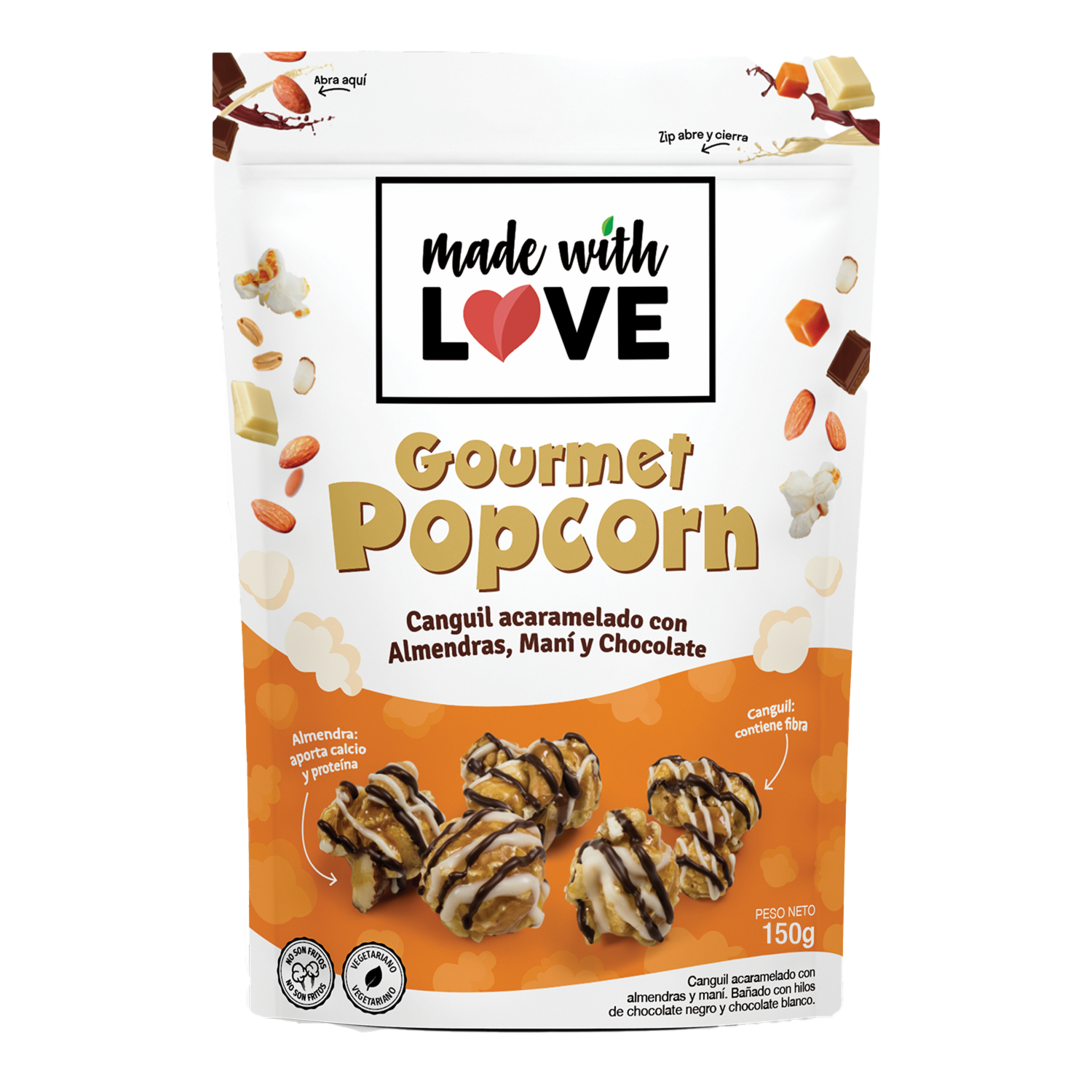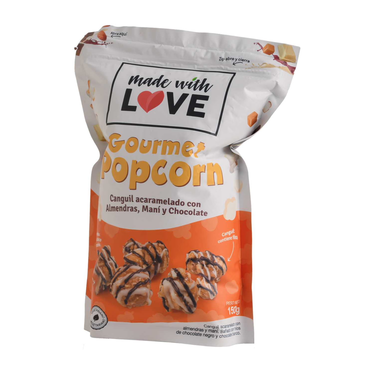 Canguil Acaramelado Con Almendras, Maní Y Chocolate Gourmet Popcorn MADE WITH LOVE 150 G