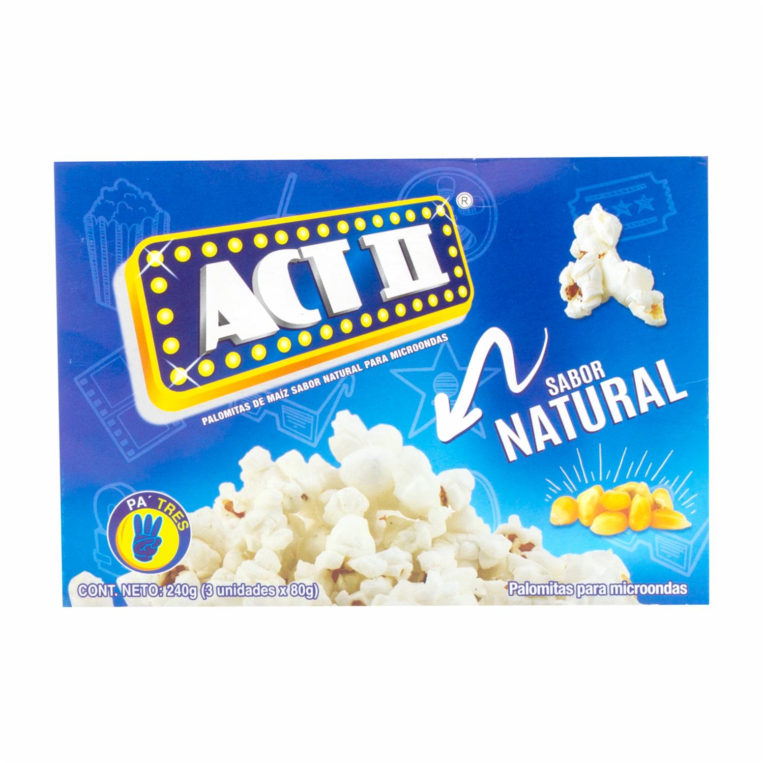 Canguil Natural 3Pack ACT II 240 G – ACT II. Disponible en nuestros locales. Precio y stock pueden variar según la tienda.