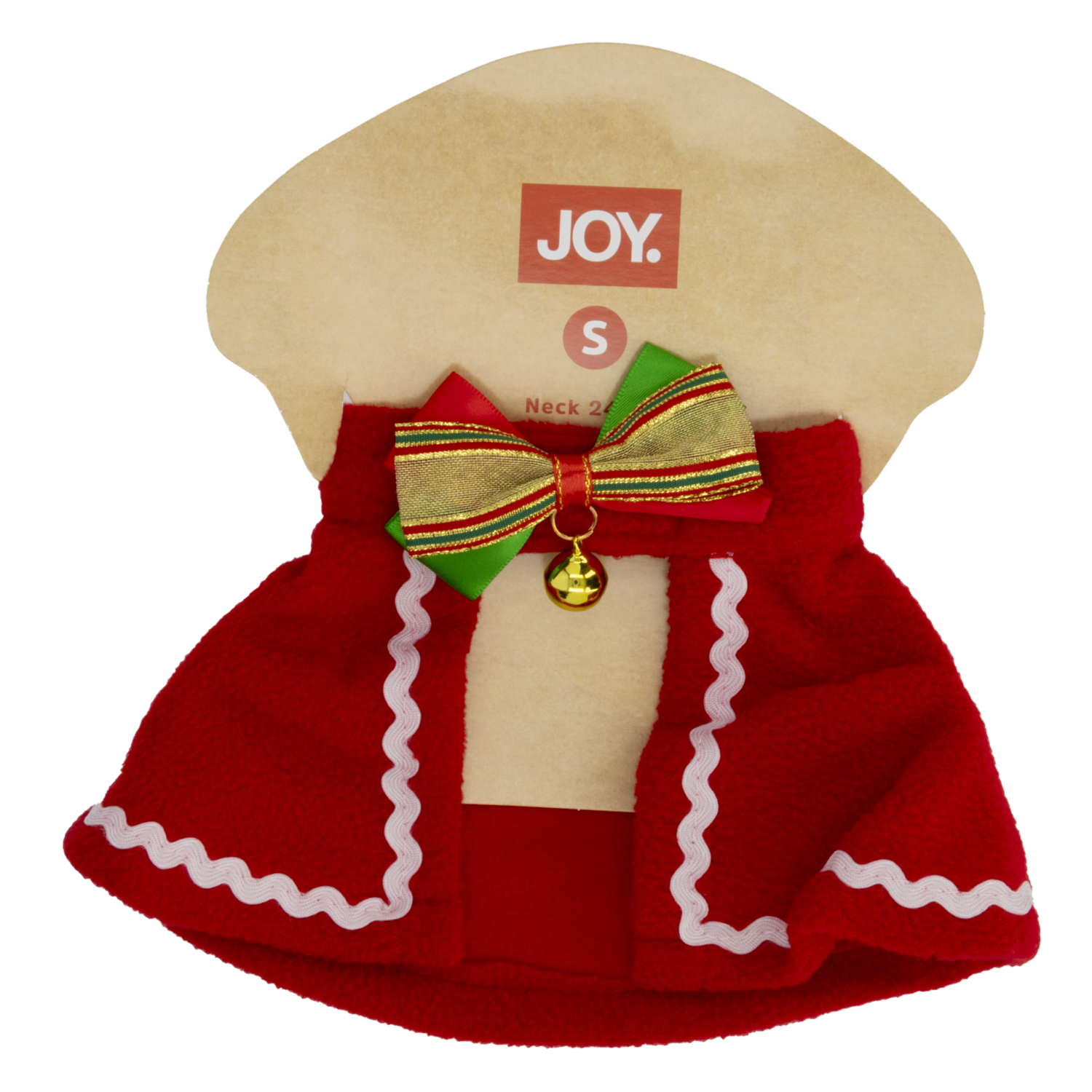 - Haz que tu peludo participe de la magia navideña con esta capa adorable JOY. Ligera, cómoda y festiva, es perfecta para fotos, reuniones o paseos durante las fiestas. Ideal para mascotas pequeñas que merecen brillar con estilo en esta temporada
