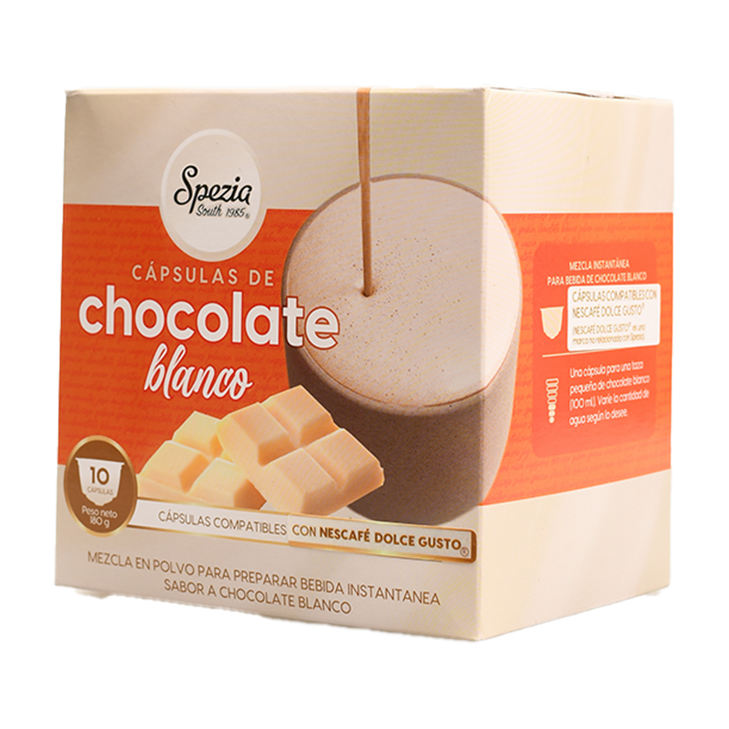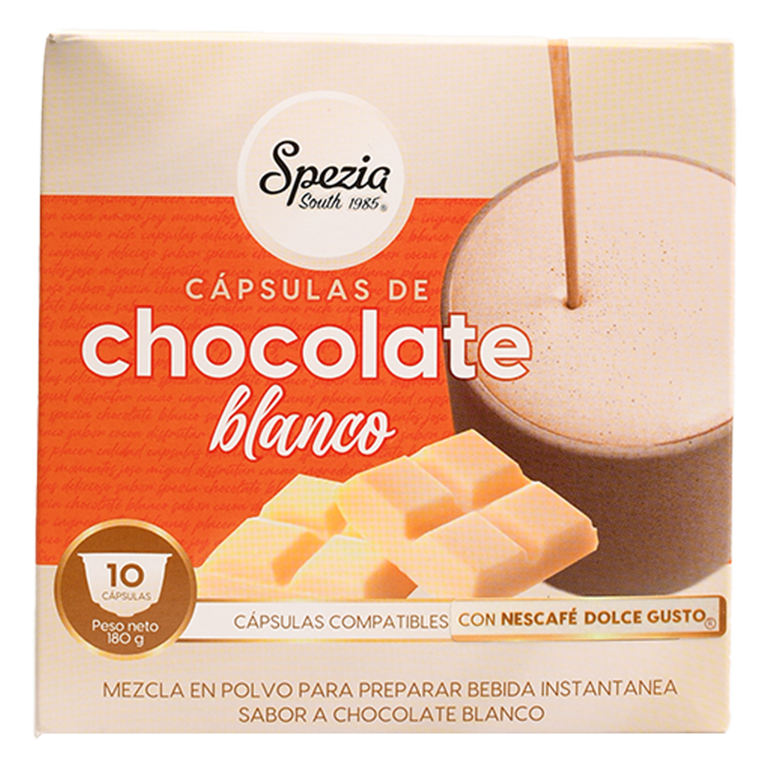 - Disfruta de un chocolate caliente cremoso y delicioso en minutos con las cápsulas SPEZIA. Fáciles de preparar, son perfectas para disfrutar en casa o en la oficina, ofreciendo un sabor intenso y reconfortante que encanta a grandes y chicos. Cada taza es un momento de placer dulce e instantáneo