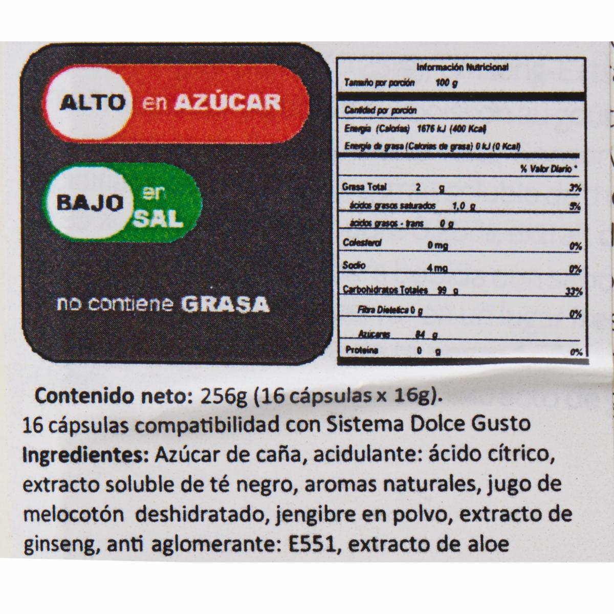 - Las Cápsulas De Té Negro Pesca, Ginseng Y Jengibre Son Una Exquisita Fusión De Sabores Que Deleitarán Los Sentidos Con Cada Sorbo. Esta Cuidadosa Combinación De Té Negro, Realzado Con La Dulzura Jugosa De La Pesca, La Energizante Presencia Del Ginseng Y El Toque Cálido Y Especiado Del Jengibre, Crea Una Experiencia De Té Única Y Revitalizante