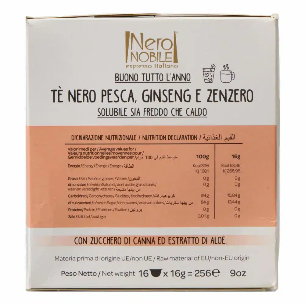 Cápsulas Té Negro Pesca Gingseng Y Jengibre NERO NOBILE 256 G