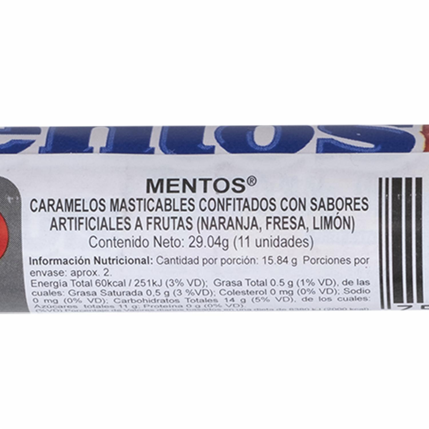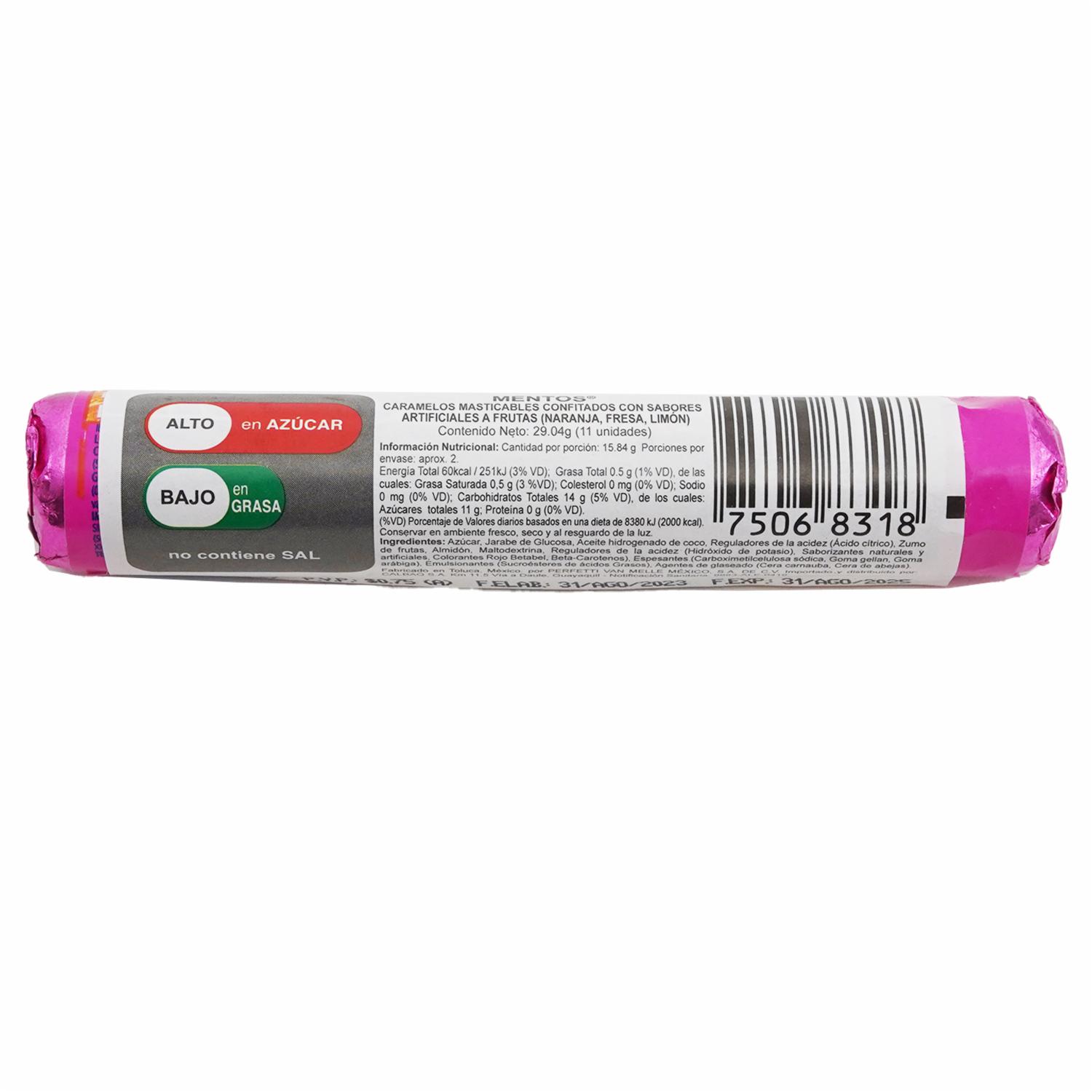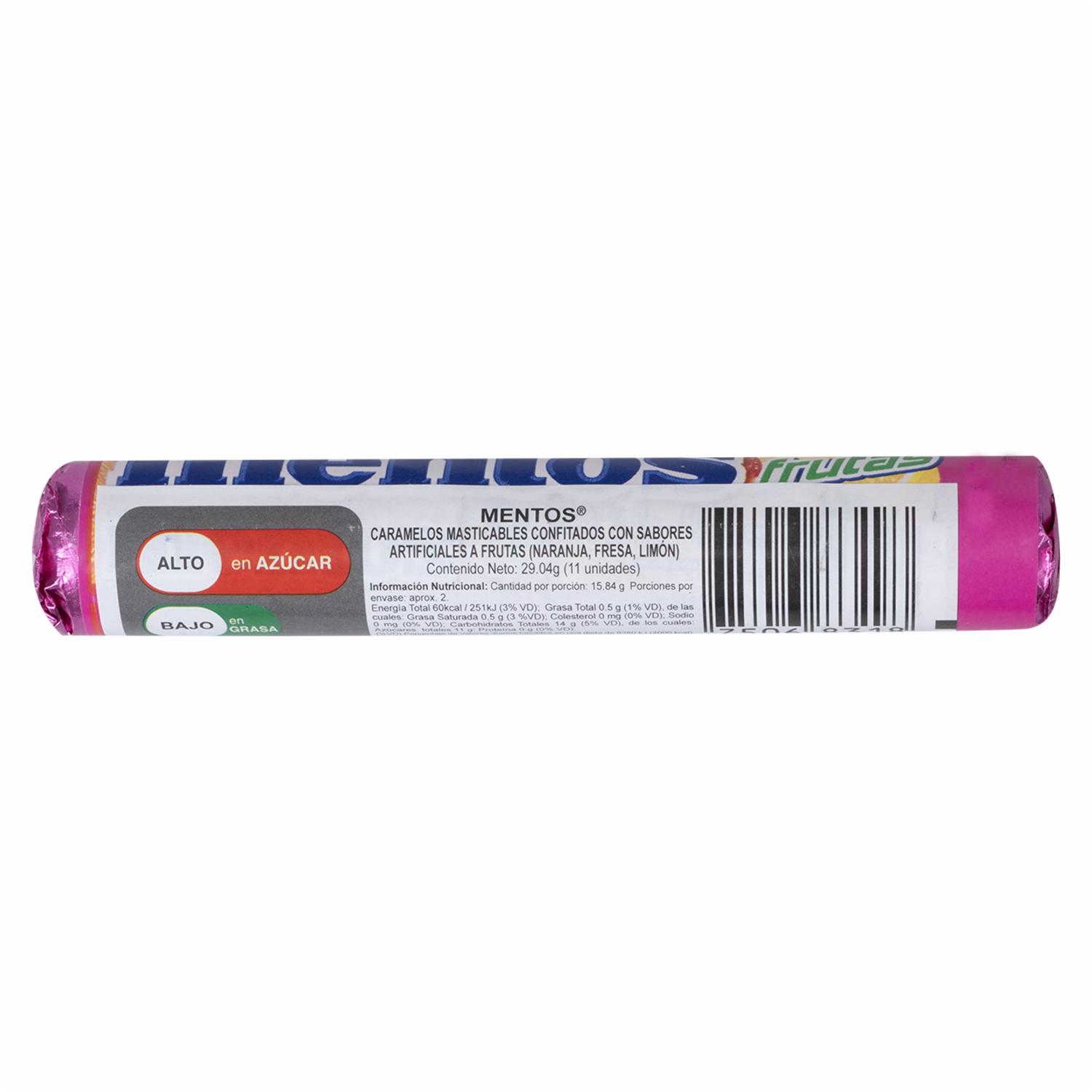 - Mentos caramelos confitados con sabor natural a frutas