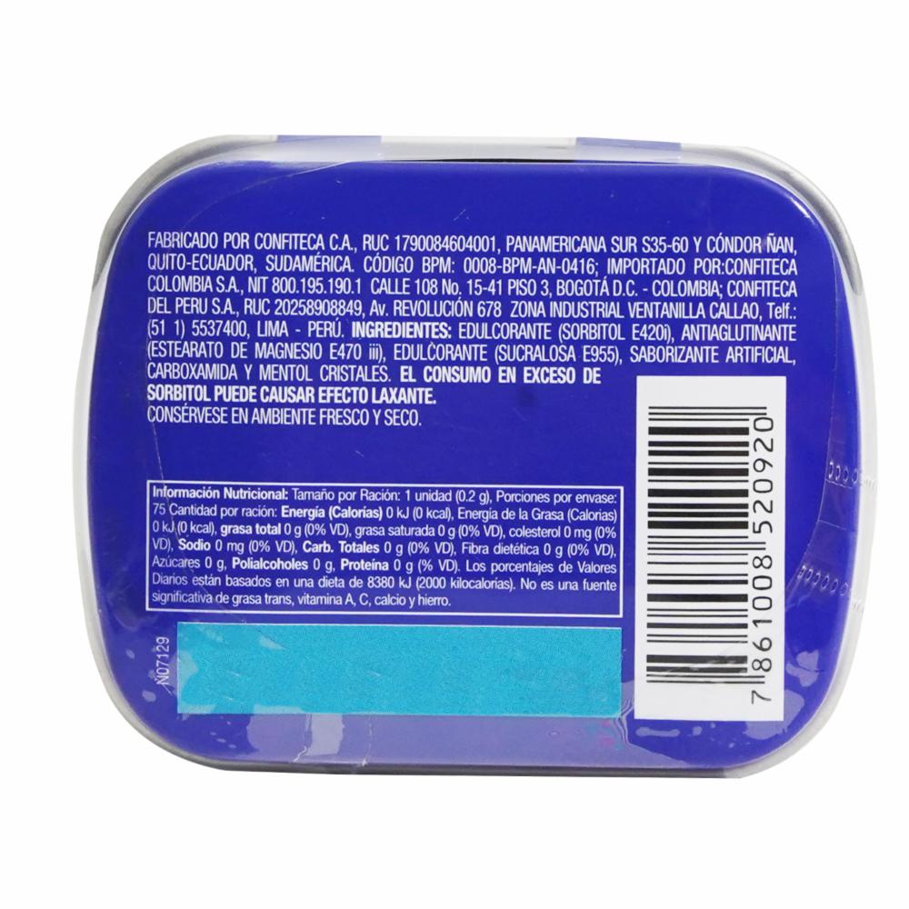 - - Es un caramelo compacto con sabor a menta. - Refresca el aliento y ayuda a combatir el mal aliento. - Viene en un envase práctico y fácil de transportar. - No contiene azúcar, por lo que es apto para personas con diabetes o que prefieren evitar el consumo de azúcar. - Es bajo en calorías, por lo que es una opción adecuada para quienes buscan cuidar su figura. - No contiene gluten, por lo que es apto para personas celíacas o con sensibilidad al gluten