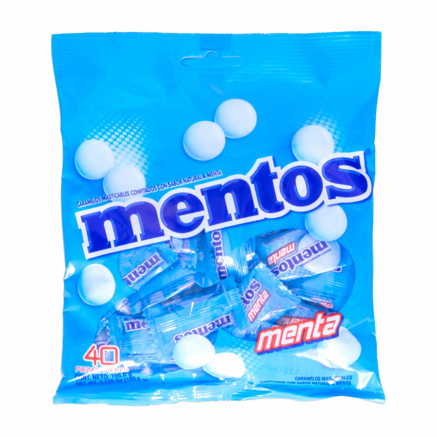 - Los Caramelos Masticables con Sabor a Menta MENTOS en envase de 105.6 gramos son una deliciosa opción para refrescar el aliento y disfrutar de un sabor agradable y duradero. Los caramelos Mentos son conocidos por su textura masticable y su sabor refrescante que brinda una sensación de frescura en la boca