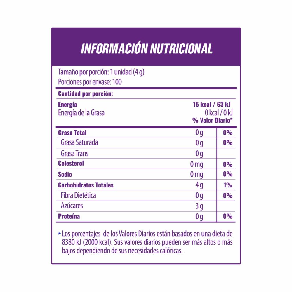 - Caramelos sabor a frutos del bosque: mora, frambuesa y mora azul con relleno líquido