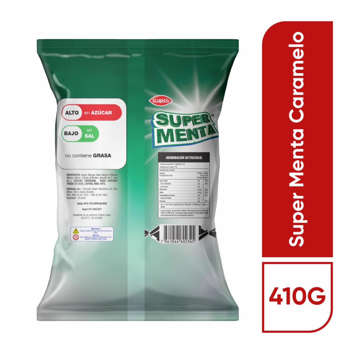 Caramelos De Menta SUPER MENTA 410 G – SUPER MENTA. Disponible en nuestros locales. Precio y stock pueden variar según la tienda.