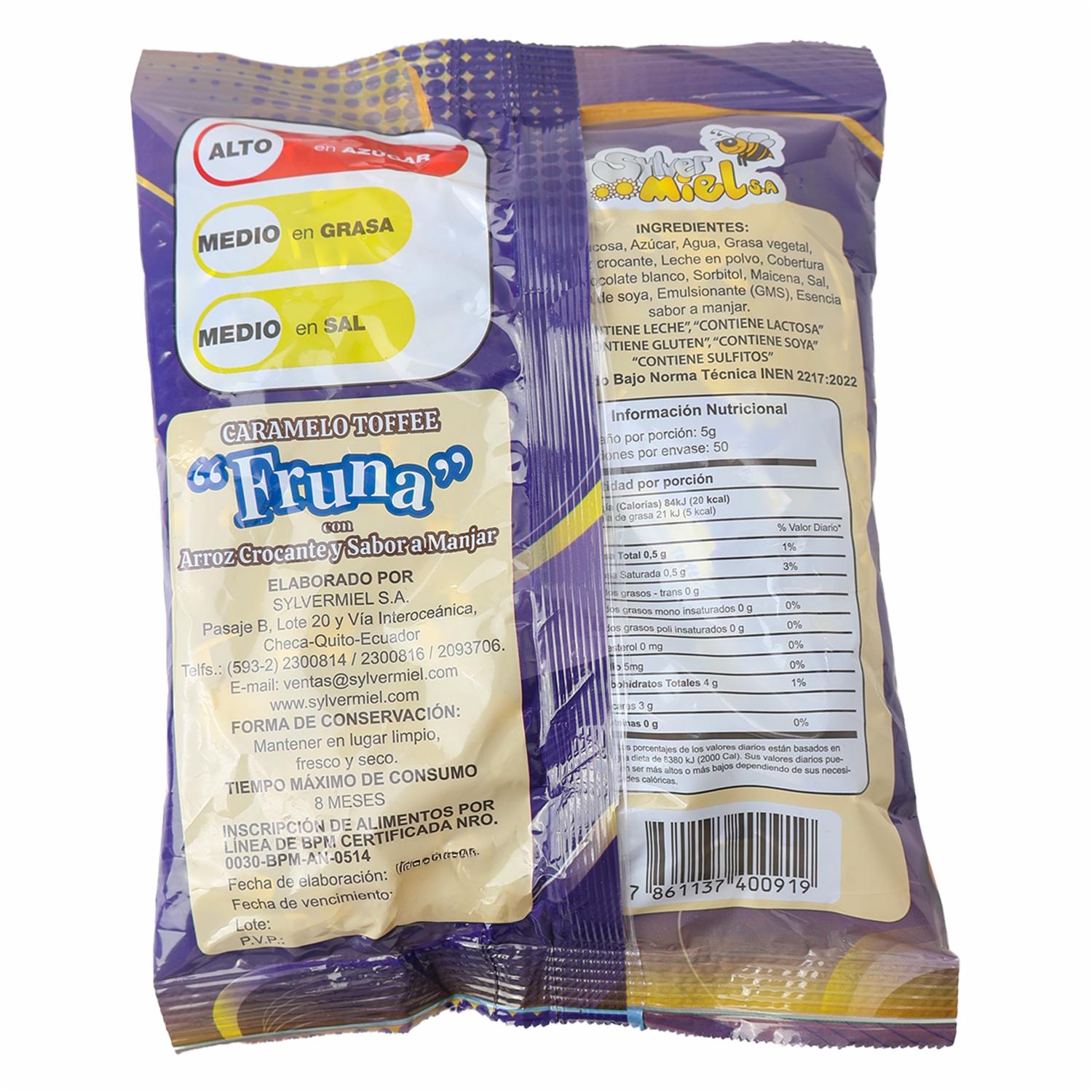 - Caramelos toffee fruna con arroz crocante y sabor a manjar