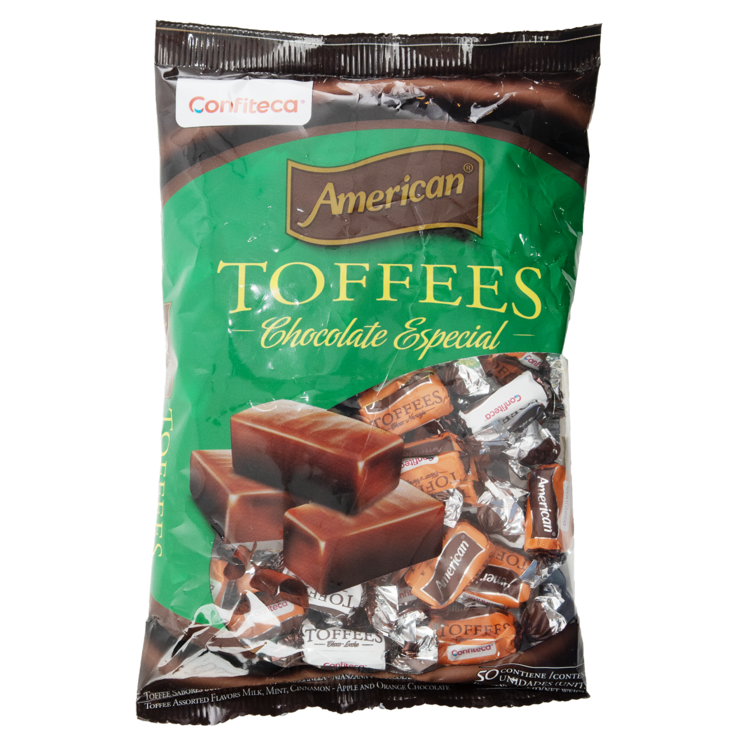 Caramelos Toffee Chocolate Especial Confiteca AMERICAN 50 x 35G. Disponible en nuestros locales. Precio y stock pueden variar según la tienda.
