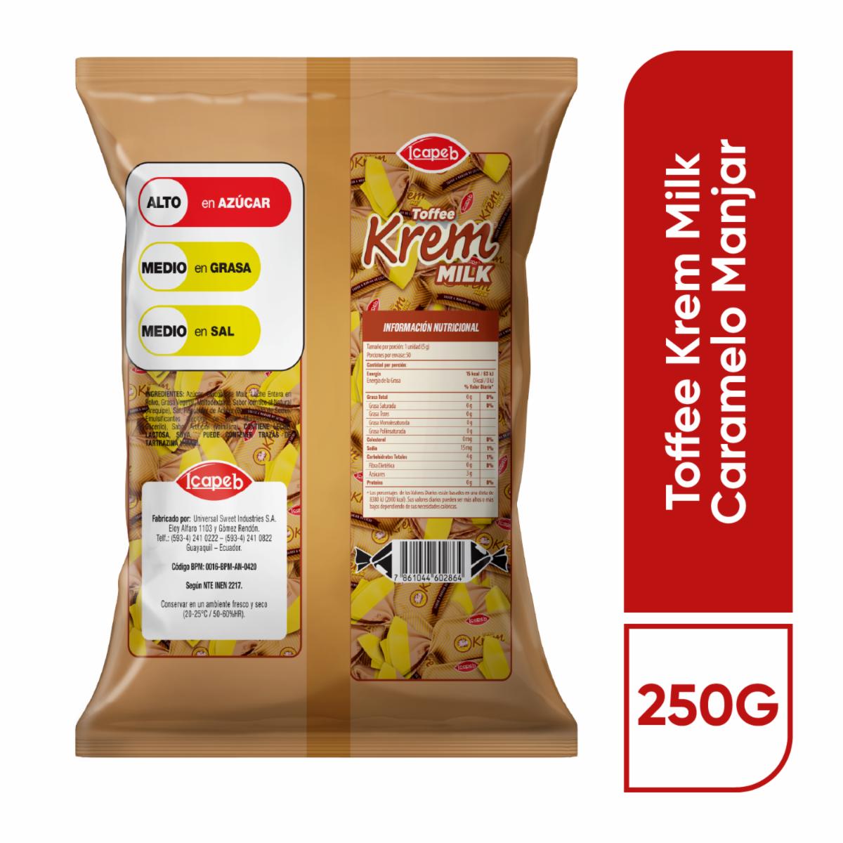 consultando preciosCaramelos Toffee Manjar KREM MILK 250 G – KREM MILK. Disponible en nuestros locales. Precio y stock pueden variar según la tienda.