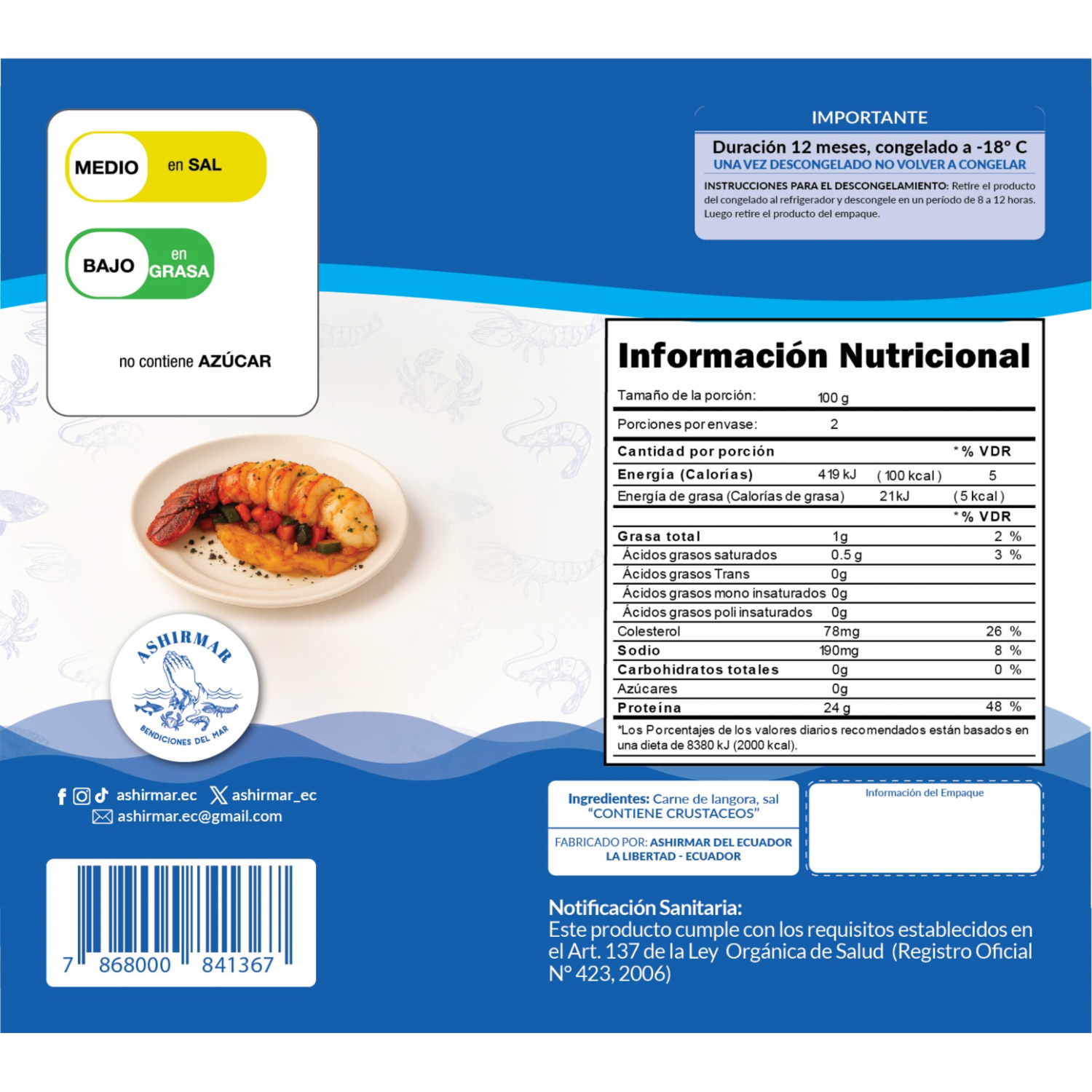Carne De Langosta Congelada ASHIRMAR 250 G – ASHIRMAR. Disponible en nuestros locales. Precio y stock pueden variar según la tienda.
