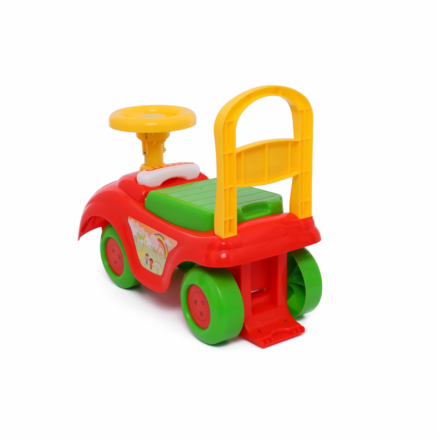 En el carrito paseador happy line, el primer montable de 4 ruedas ligero fácil de ensamblar. Sus ruedas en plástico proporcionan un relajante paseo donde tu pequeño puede desarrollar habilidades motrices y agilidad al caminar. Además, tiene manija en el espaldar para que los papás halen el niño haciéndolo a avanzar, en el baúl ubicado debajo de la silla podrá guardar todos tus juguetes. Fortalece la fuerza del cuerpo de tu hijo: manos y piernas, estimula los sentidos mientras se divierte