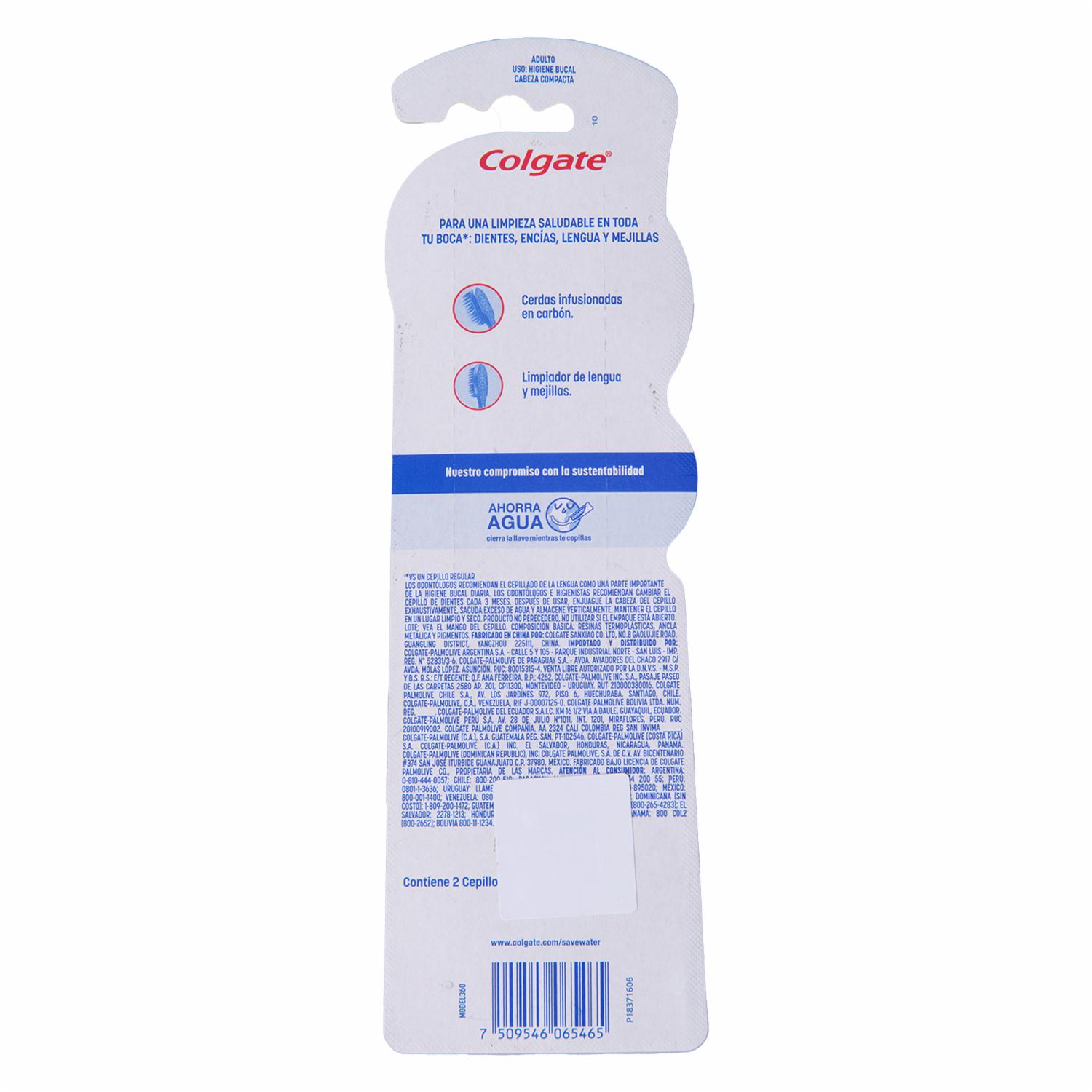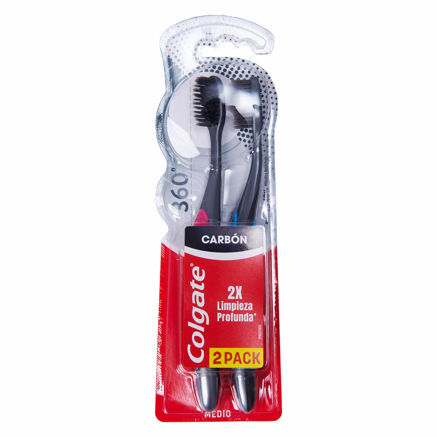 Cepillo Dental 360 Con Carbón Activado Cerdas Medias COLGATE 2 Piezas