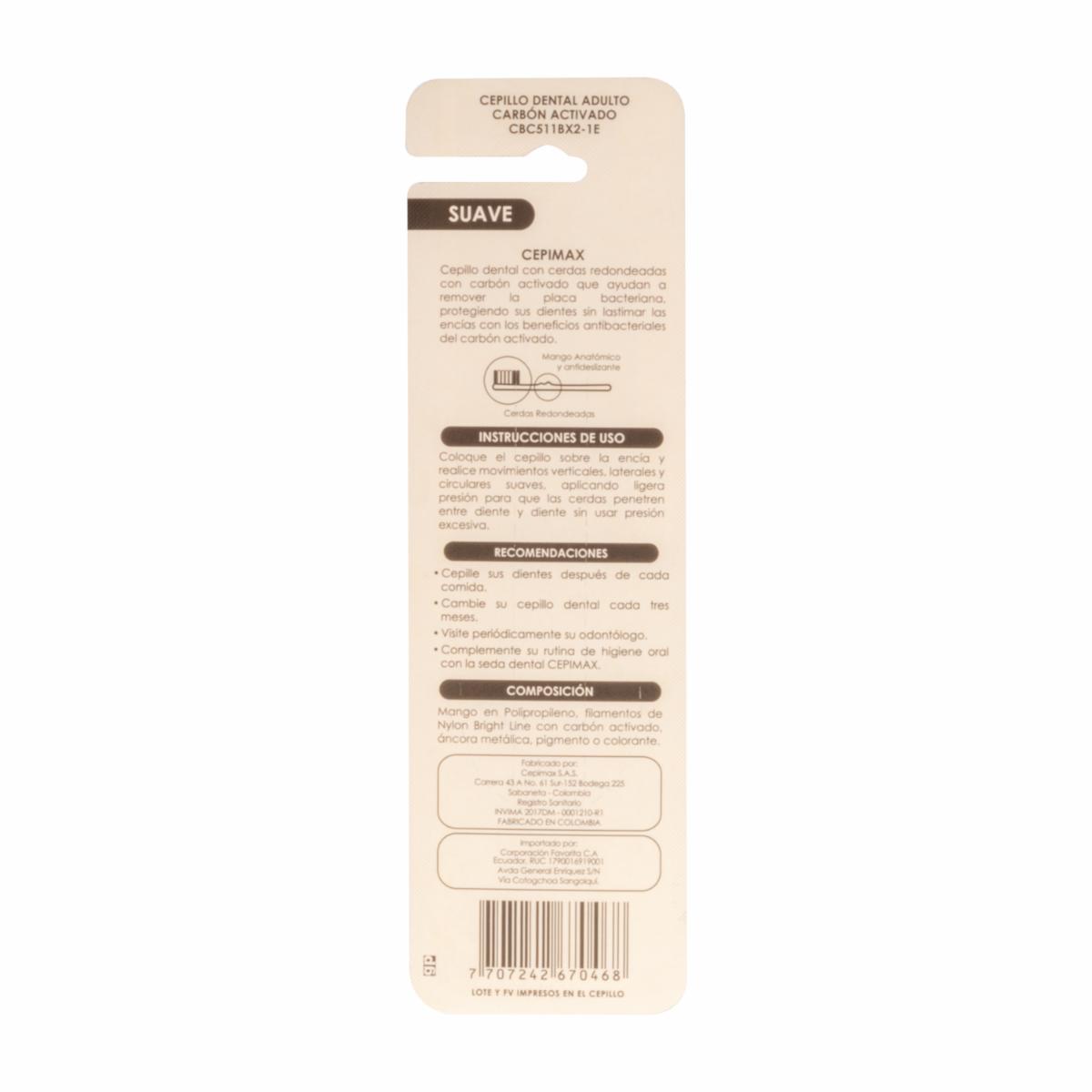 Cepillo Dental Adulto Cerdas Suaves Carbón Activo CEPIMAX Pack X2 U