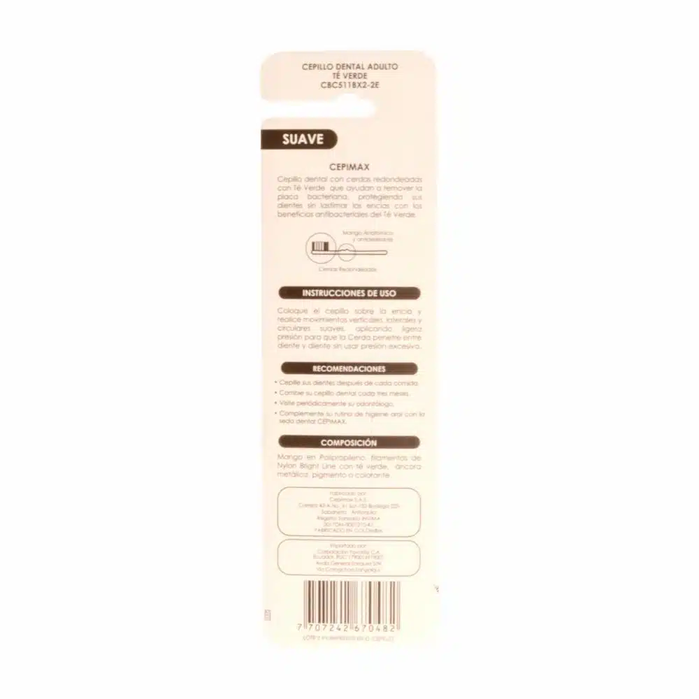 Cepillo Dental Adulto Cerdas Suaves Té Verde CEPIMAX Pack X2 U
