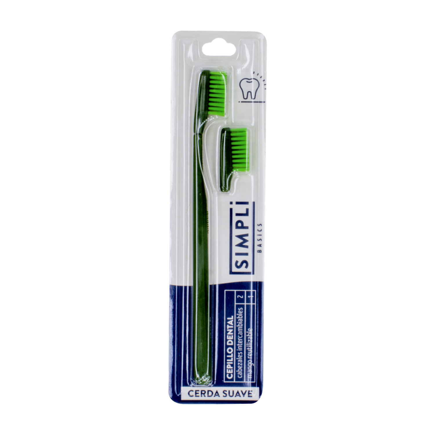 Cepillo Dental Cerdas Suaves Cabeza Intercambiable +1 Cabezas De Repuesto SIMPLI 1 Pack