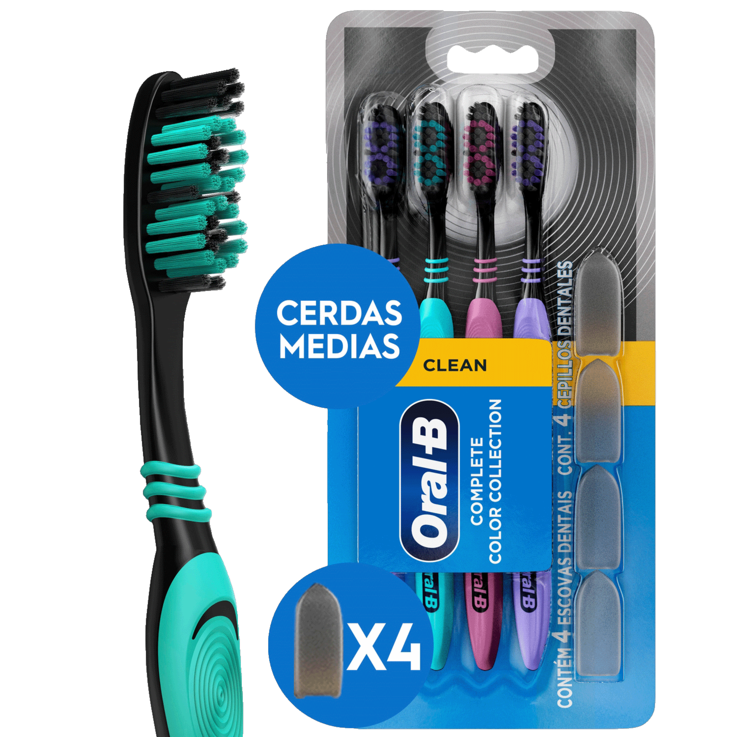 - Prueba Complete 4-Pack de 4 cepillos de dientes Color Collection de Oral B, cepillos de dientes que le darán una limpieza efectiva a toda tu familia, elige el color preferido de cada uno. Las cerdas en forma de copa de este cepillo de dientes brindan una limpieza eficaz en zonas de difícil alcance