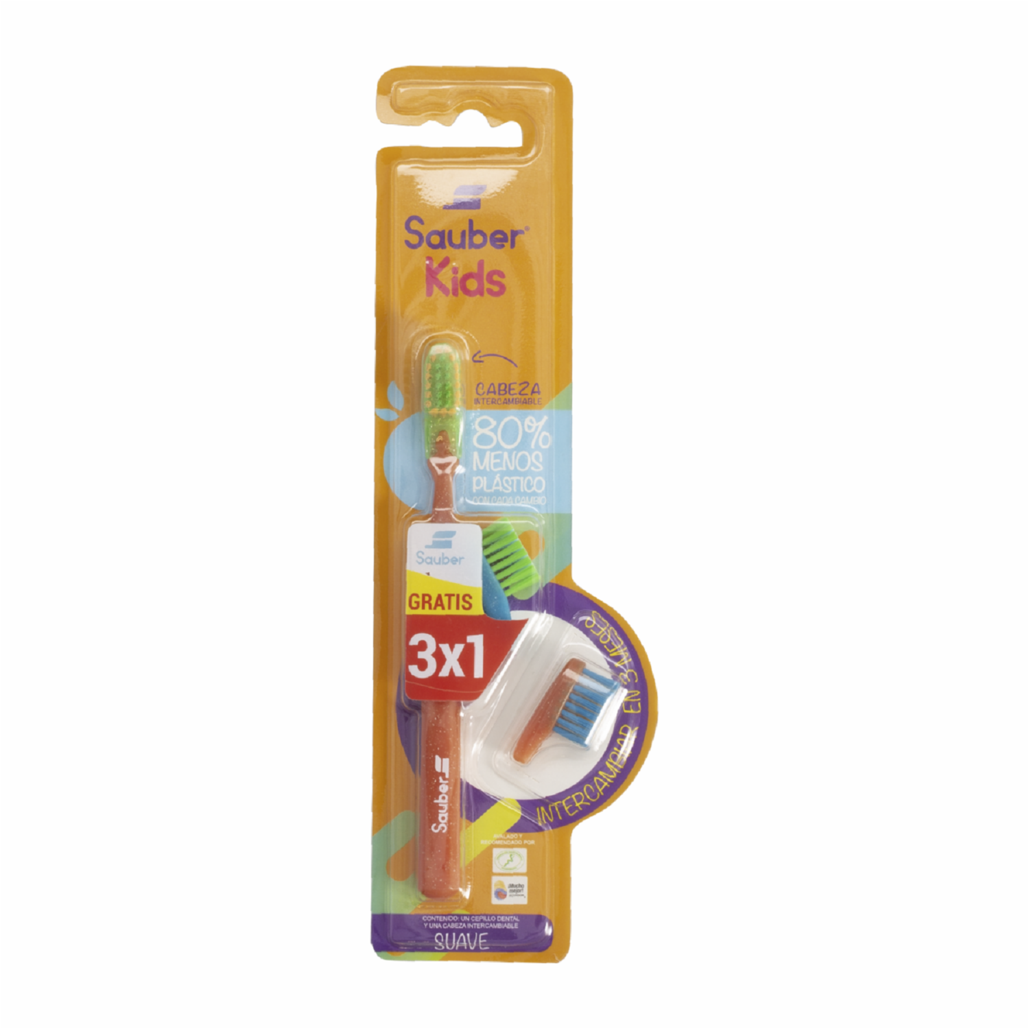 Cepillo Dental Infantil Cerdas Suaves Cabeza Intercambiable +2 Cabezas De Repuesto SAUBER 1 Pack