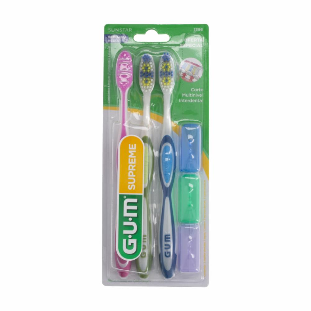 Cepillo Dental Supreme Cerdas Medianas GUM Pack X3 U