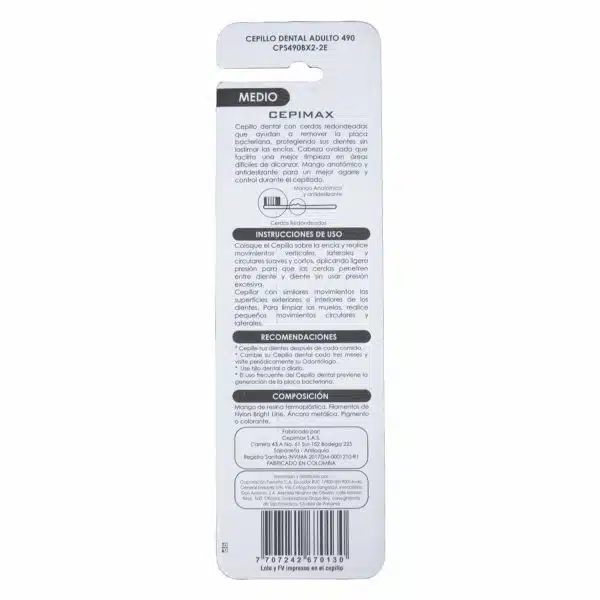 Cepillo Dental Adulto 490 Ps Cerdas Medianas CEPIMAX Pack X2 U