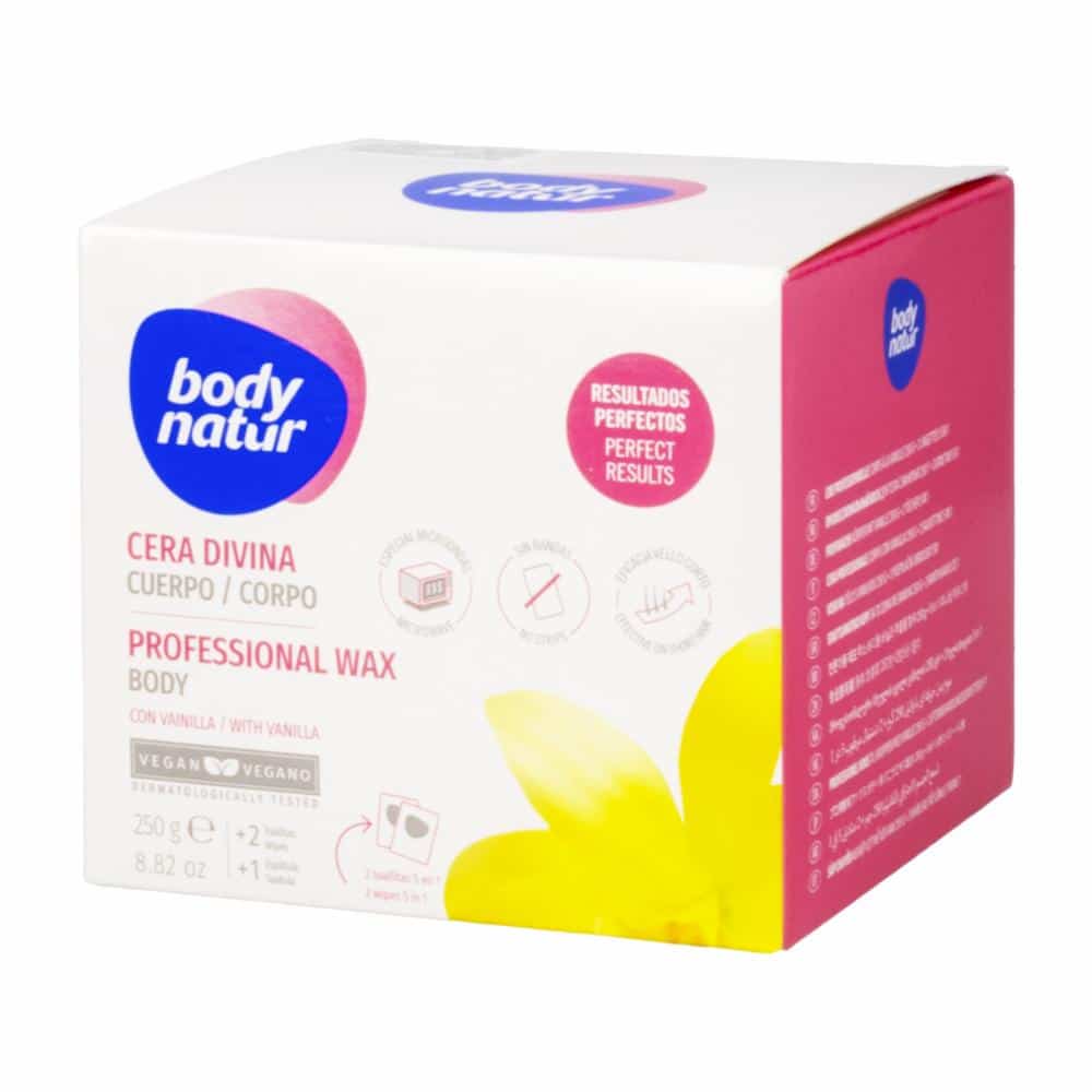 Cera Depilatoria Corporal Profesional Con Vainilla + Toallitas Post Depilatorias BODY NATUR 250 G