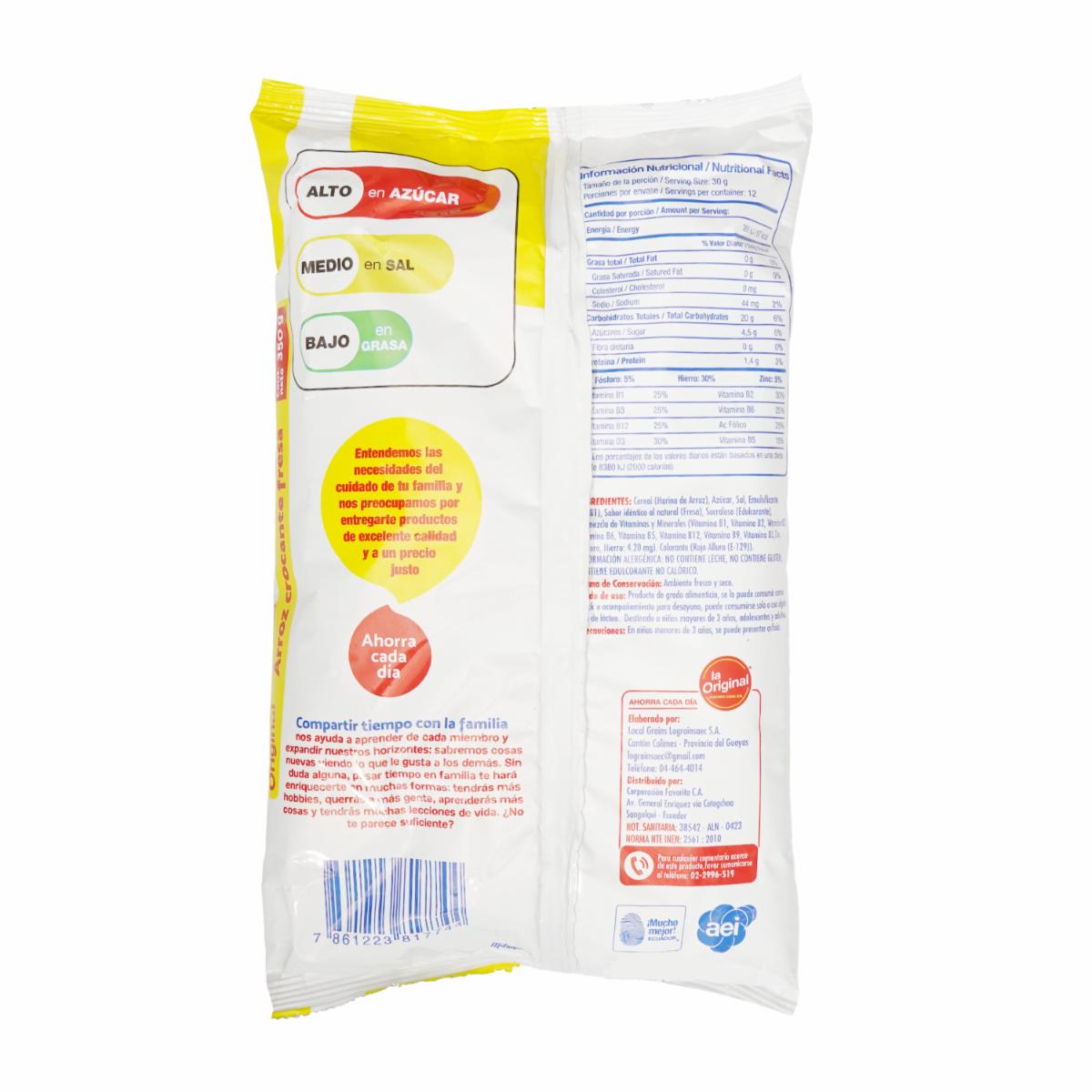 - Crujiente, ligero y con el dulce sabor natural de la fresa, este cereal de arroz LA ORIGINAL es el compañero ideal para tus mañanas. Perfecto para disfrutar con leche o como un snack saludable en cualquier momento. ¡Dale un toque fresco y divertido a tu día!