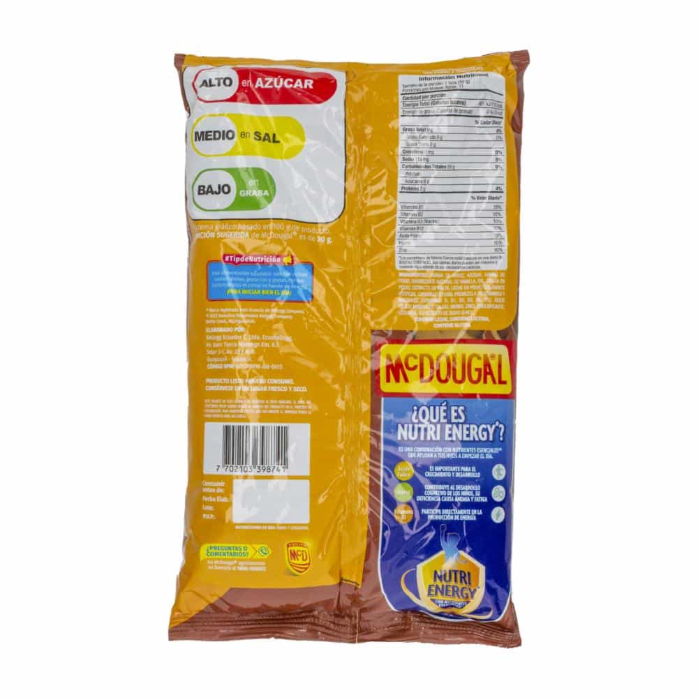 - El "Cereal De Arroz Crocante Chocolate Bolsa MC.DOUGAL 320 G" es un tipo de cereal de arroz inflado con sabor a chocolate, que ofrece una opción deliciosa y crujiente para el desayuno o como snack