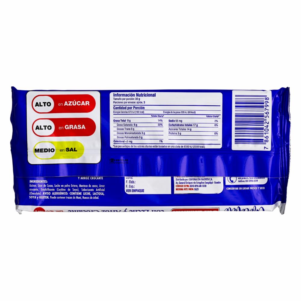 Fantástica combinación de chocolate con leche y arroz crocante, textura crujiente y delicioso sabor