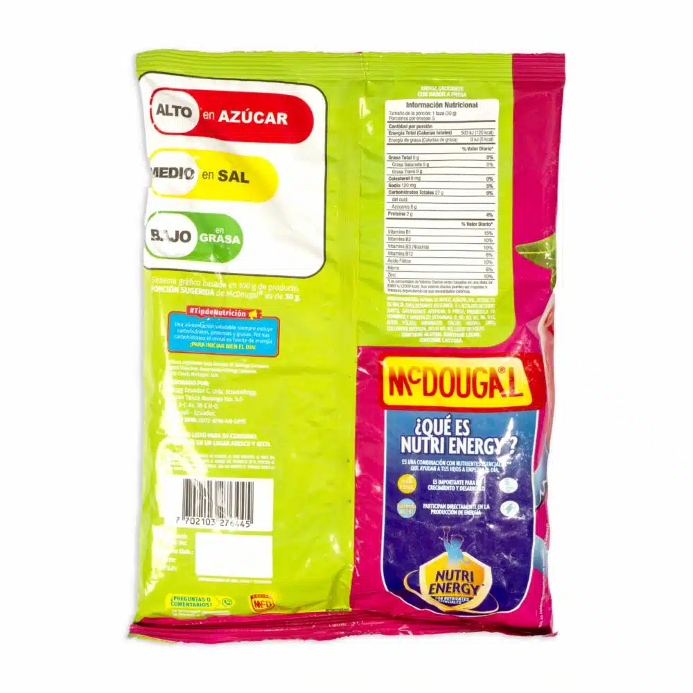 El "Cereal De Arroz Crocante Fresa MC.DOUGAL 150 G" es un tipo de cereal de arroz inflado con sabor a fresa, que proporciona una opción deliciosa y crujiente para el desayuno o como snack