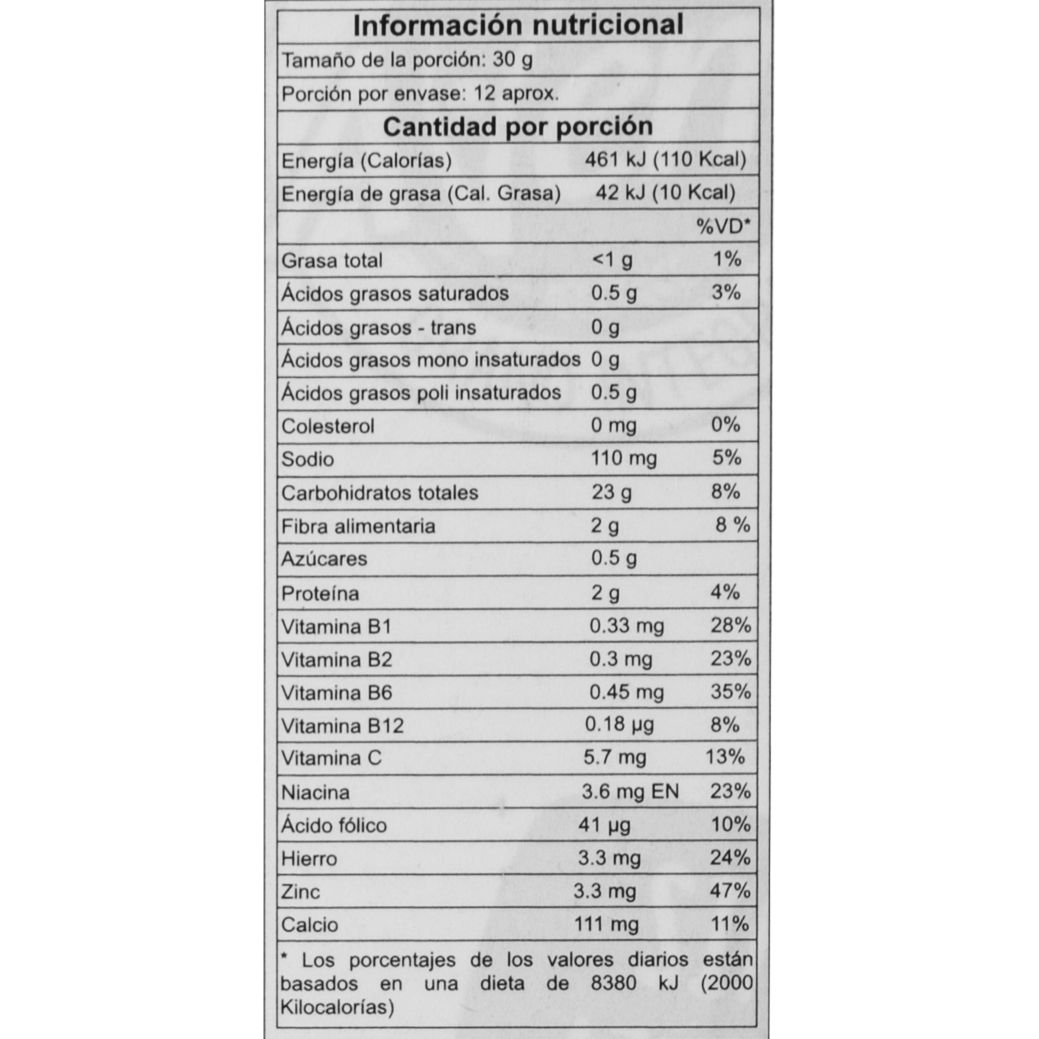 - Cereal para el desayuno a base de maiz, trigo, avena integral y arroz, sin azucar añadida