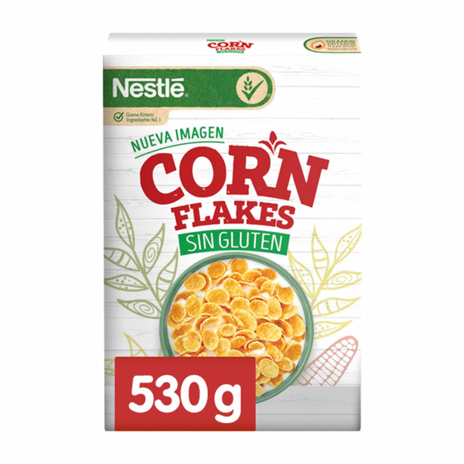 - Cereal Corn Flakes de NESTLÉ es una maravillosa manera de empezar tu día con el delicioso sabor de las hojuelas de maíz, pero sin gluten. Ricas y crujientes hojuelas de maíz, fortificadas con 9 vitaminas