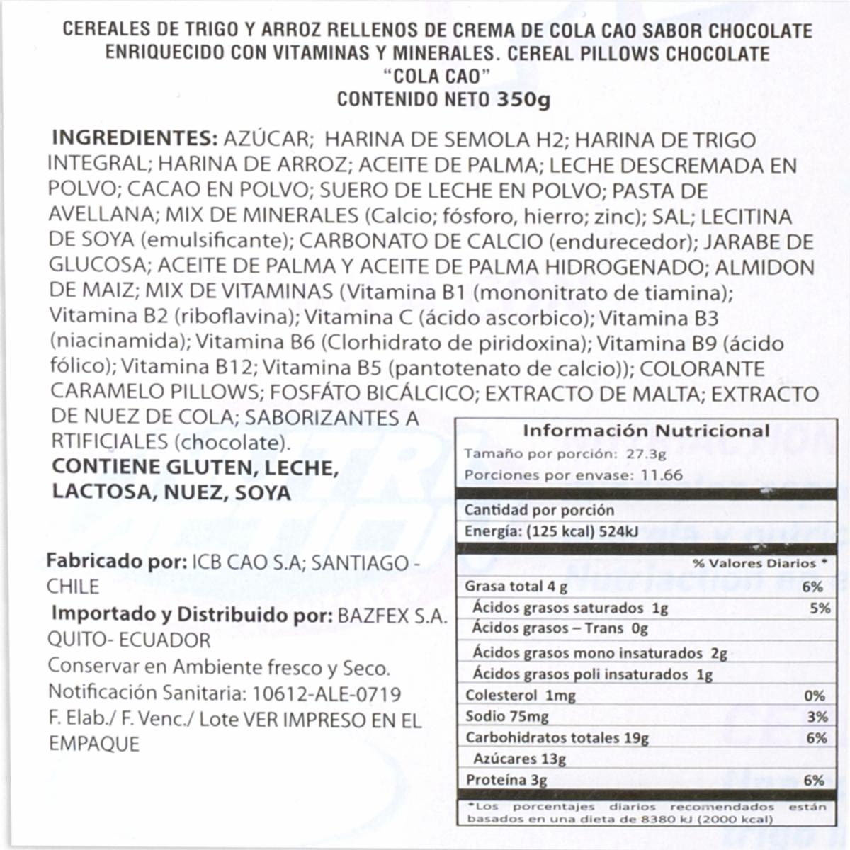 - El Cereal Relleno con Crema COLA CAO es una deliciosa opción para el desayuno o como snack en cualquier momento del día. Este cereal ofrece una combinación única de crujientes cereales rellenos con crema de cacao, proporcionando un sabor irresistible que encantará a niños y adultos por igual