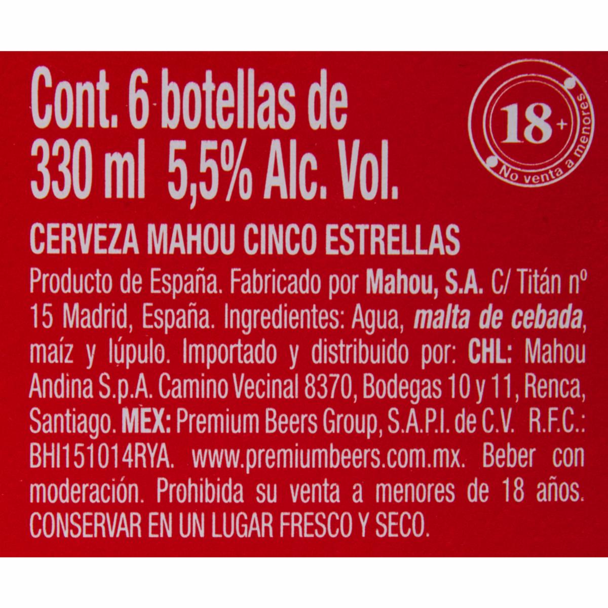 Cerveza 5 Estrellas MAHOU 6 X 330 Ml