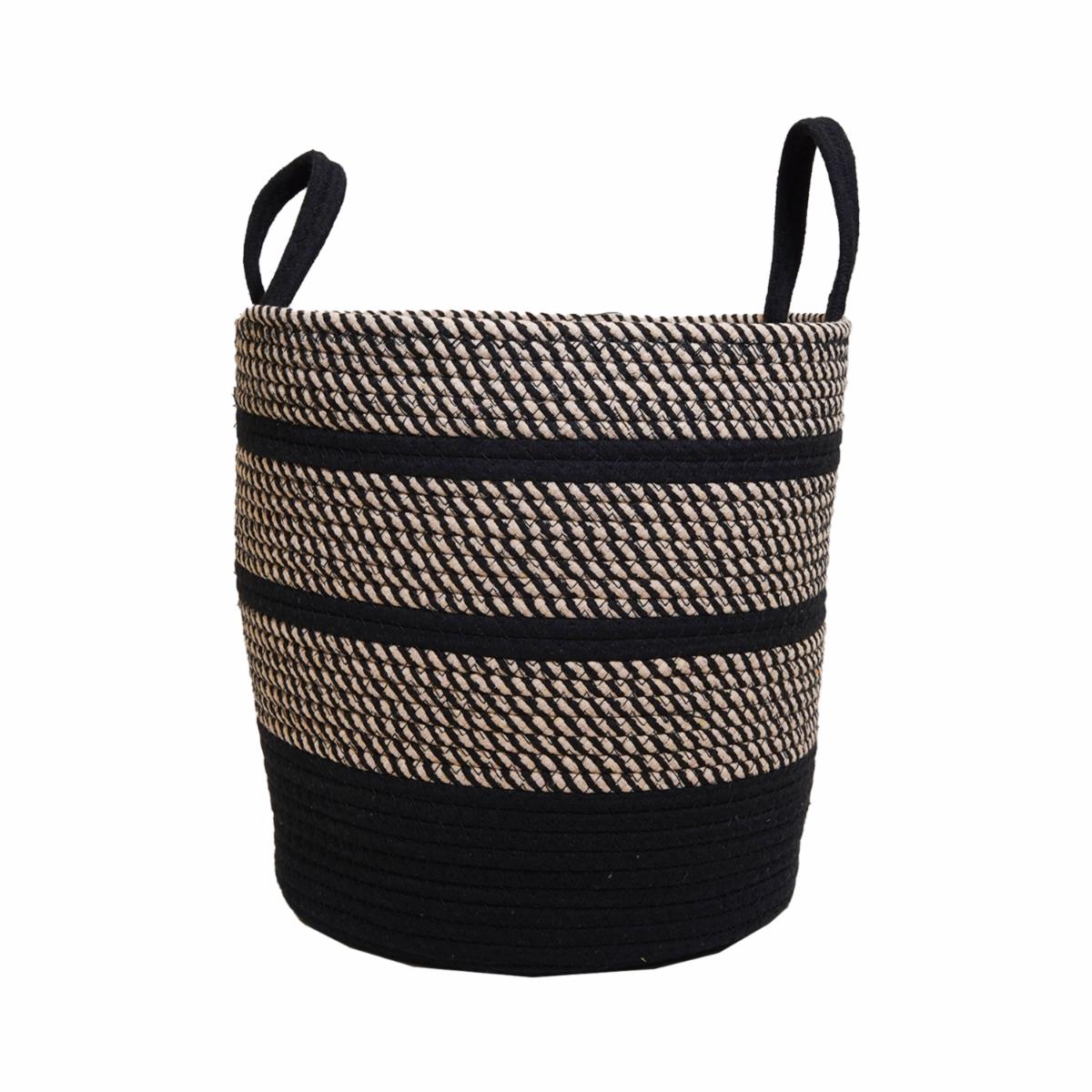 Cesto De Mimbre Color Negro Con Beige FREE HOME Unidad