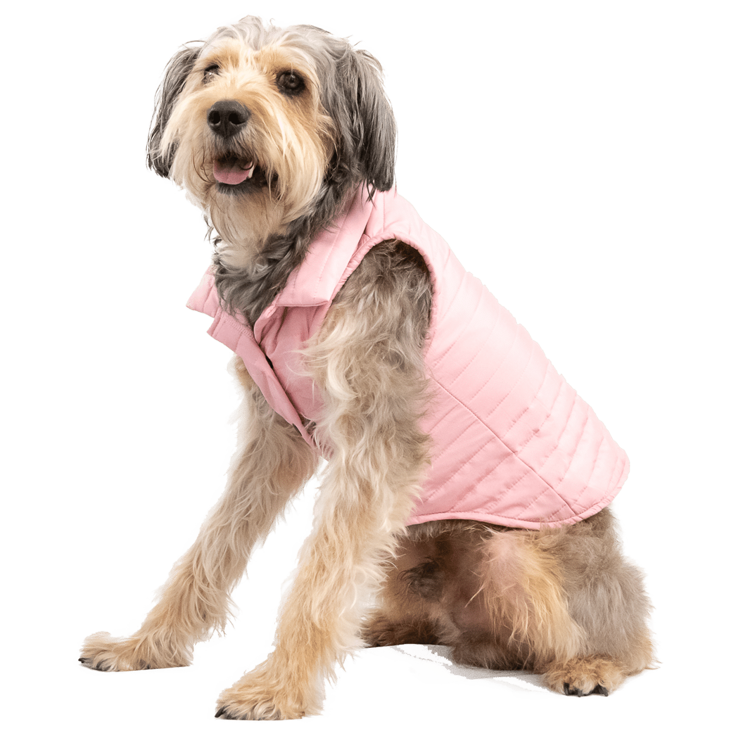 Este encantador chaleco acolchado sin mangas, resistente al agua y al viento. Perfecto para esos días de clima frío en los que necesitas que tu mascota este abrigada. Luciendo fabulosos!