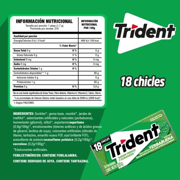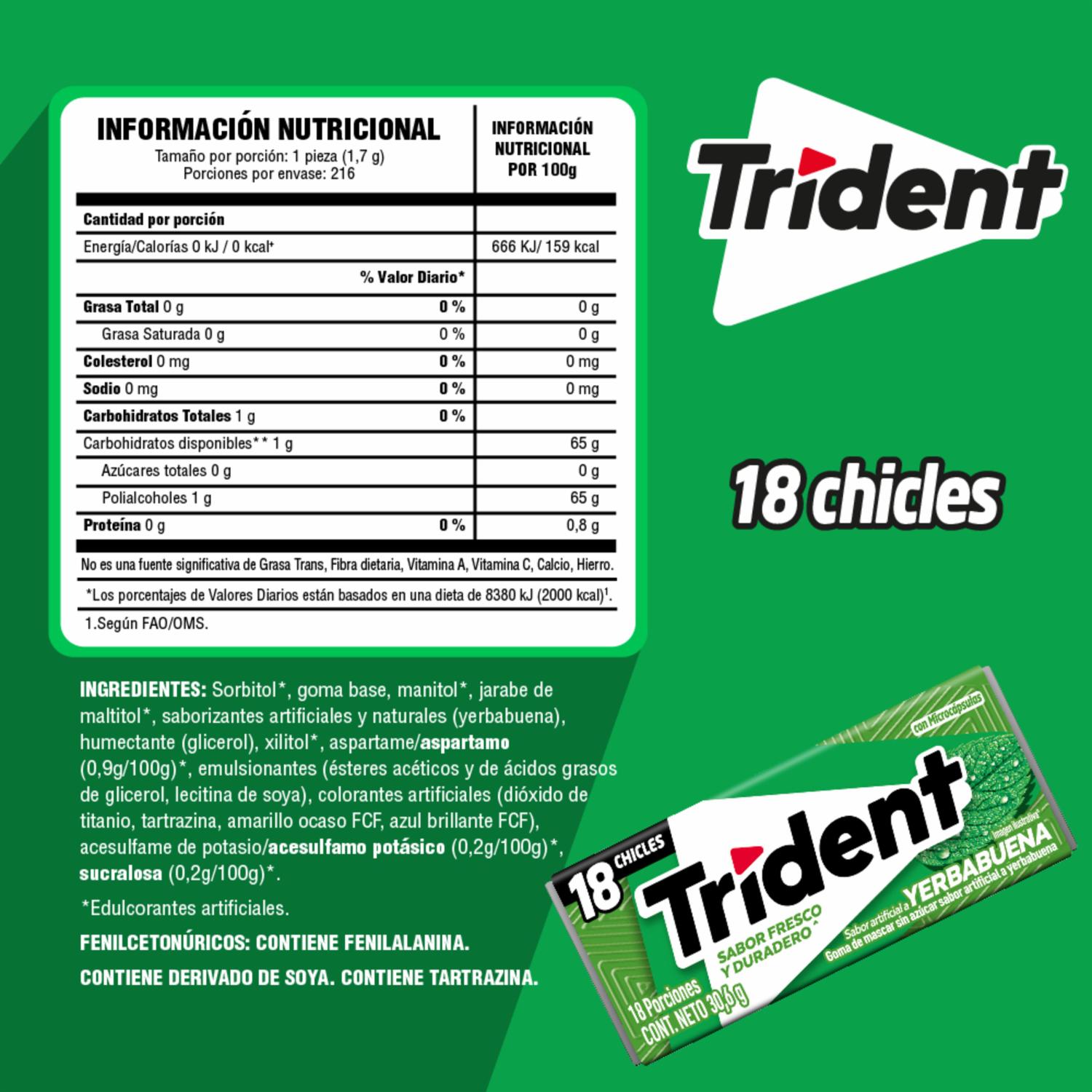 Chicles Sabor A Yerbabuena TRIDENT 30.60 G