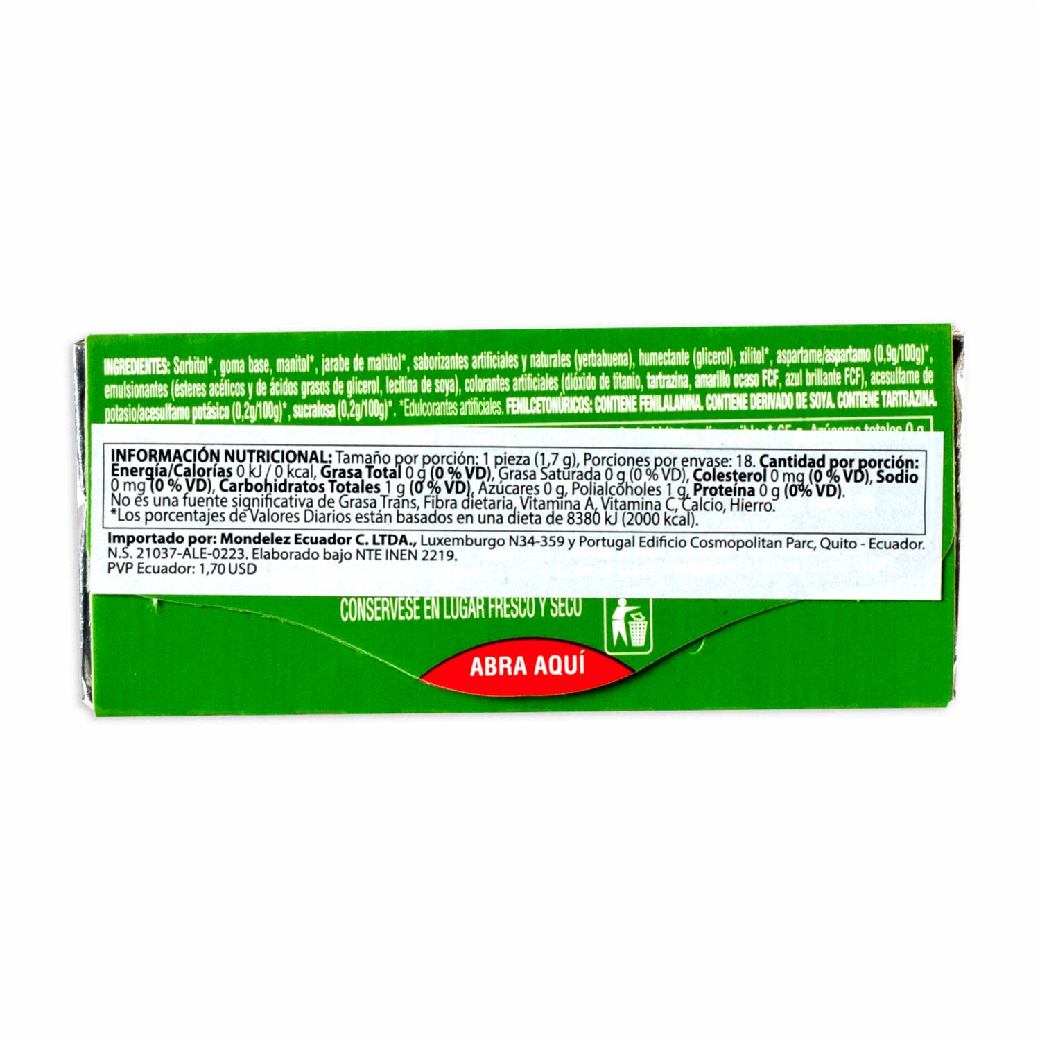 - 18 chicles más suaves, con microcápsulas de sabor a Yerbabuena, intenso y duradero, para que refresques tus días