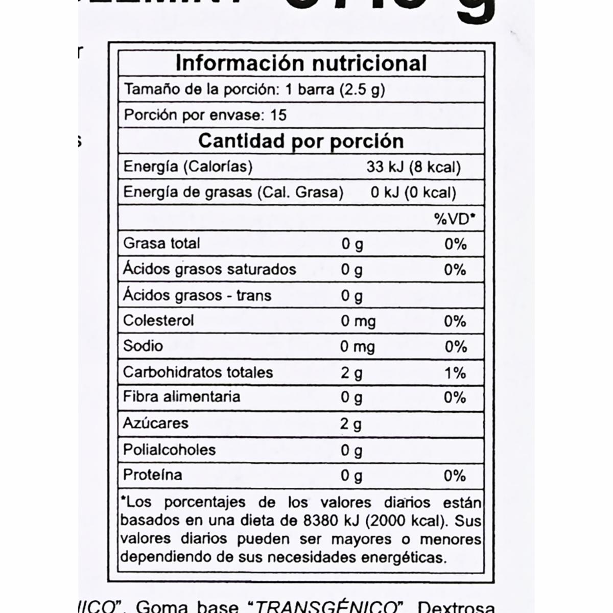 - Chicle con bajo contenido de azúcar ayuda a prevenir las caries y le da un aliento fresco