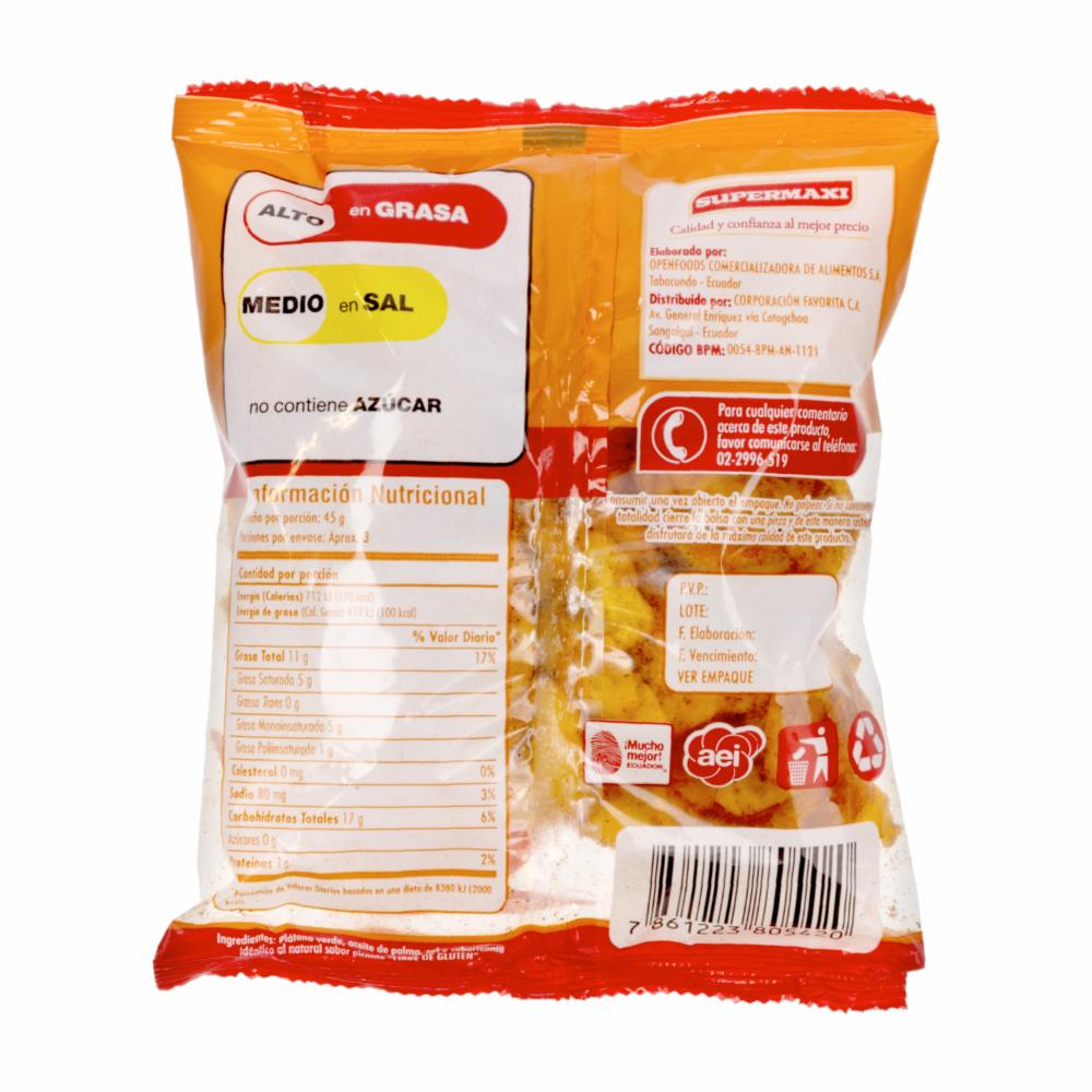 El Chifle Picante SUPERMAXI está sazonado con una mezcla de especias picantes que aportan un sabor intenso y vibrante. Perfecto para aquellos que disfrutan de un toque de picante en sus bocadillos