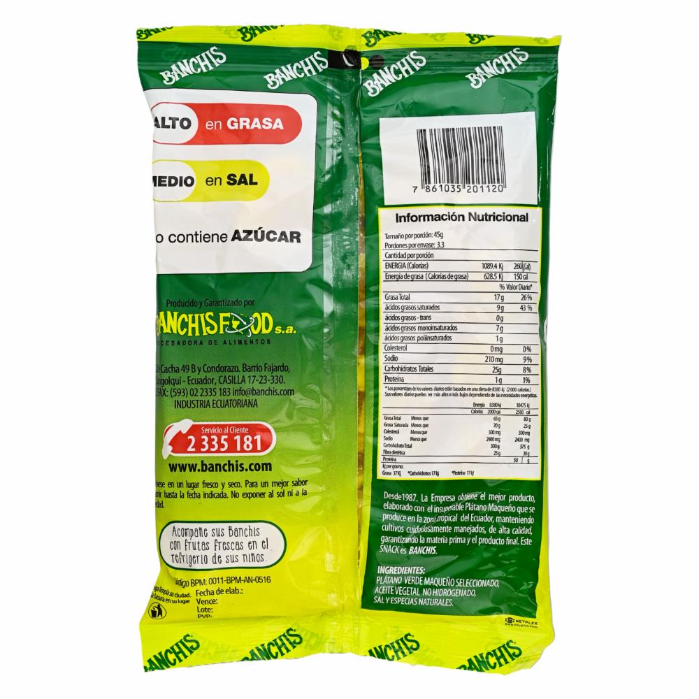 - El Chifle BANCHIS es un snack de maqueño, rebanado en rodajas, delicadamente frito, saborizado y empacado en fundas de polipropileno biorientado laminado, especial para alimentos, de diferente presentación