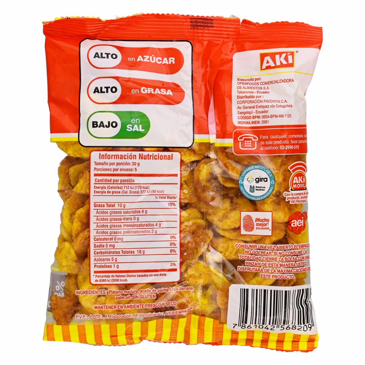 consultando preciosChifles De Dulce AKÍ 150 G – AKÍ. Disponible en nuestros locales. Precio y stock pueden variar según la tienda.