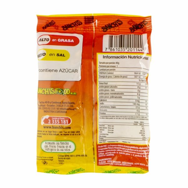 Es un snack de MAQUEÑO, rebanado en rodajas, delicadamente frito, saborizado y empacado en fundas de polipropileno biorientado laminado