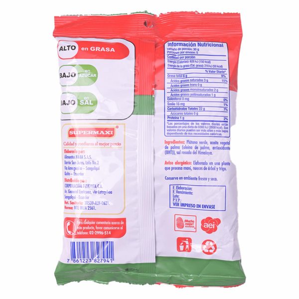 Crujientes y dorados, los chifles redondos con sal SUPERMAXI en presentación de 150 g son el snack ideal para cualquier ocasión. Su sabor natural y textura perfecta los convierten en el acompañante favorito para compartir o disfrutar solo. ¡Un bocado que siempre conquista!