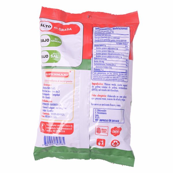 Disfruta de los chifles redondos con sal SUPERMAXI en presentación de 300 g, perfectos para compartir en familia o con amigos. Crujientes y sabrosos, ofrecen ese toque natural que hace cada bocado irresistible. El snack ideal para acompañar tus momentos favoritos